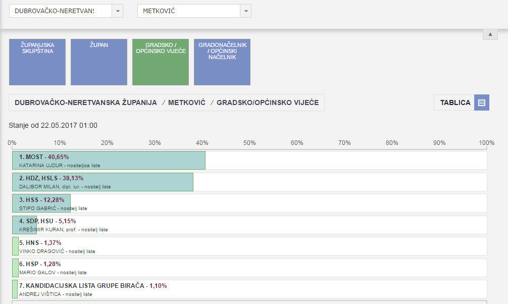 Metković, 30.5.2017. - Nakon proteka rokova za podnošenje prigovora, Gradsko izborno povjerenstvo Grada Metkovića objavilo je konačne rezultate izbora za Gradsko vijeće i gradonačelnika Grada Metkovića.