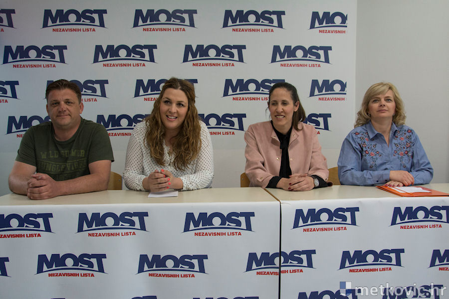Metković, 2.5.2017. - Na konferenciji za medije, koja se danas održala u njihovim stranačkim prostorijama, Most nezavisnih lista predstavio je troje novih ljudi koji su odlučili podržati kandidaturu Katarine Ujdur za gradonačelnicu Metkovića na izborima 21. svibnja.