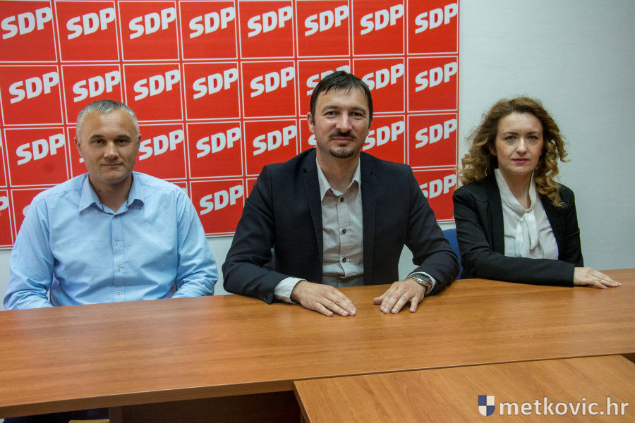 Metković, 4.5.2017. - Danas je u stranačkim prostorijama gradonačelnički kandidat SDP-a na lokalnim izborima Krešimir Kuran predstavio svoje zamjenike Radu Nikoletića i Zdravku Barišić.