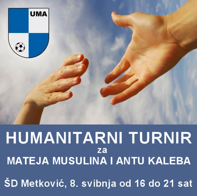 Metković, 5.5.2017. - Ovogodišnja završnica UMA malonogometne lige Metkovića ima humanitaran predznak. Posljednje četiri utakmice, koje su na rasporedu u ponedjeljak, 8. svibnja, u standardnom terminu od 16 do 20 sati, igrat će se za dvojicu naših teško oboljelih sugrađana, Mateja Musulina i Antu Kaleba, koji se trenutno nalaze na liječenju u bolnici u Zagrebu.