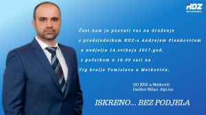 Metković, 4.5.2017. - Koalicijski partneri HDZ i HSLS danas su Gradskomu izbornom povjerenstvu predali prikupljene potpise kojima se Dalibor Milan kandidira za gradonačelnika te ujedno i Kandidacijsku lista za Gradsko vijeće Grada Metkovića.