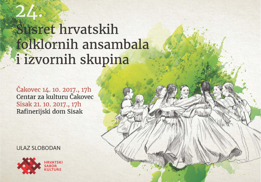 16.10.2017. - U organizaciji Hrvatskog sabora kulture i uz materijalnu potporu Ministarstva kulture Republike Hrvatske Međimurske županije i Grada Čakovca, 14. listopada 2017. godine u Centru za kulturu u Čakovcu održan je prvi dio 24. susreta hrvatskih folklornih ansambala i izvornih skupina.