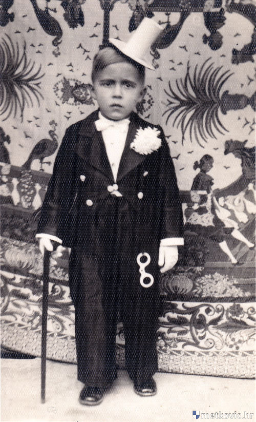7.2.2018. - Mario Talajić poslao nam je prigodnu fotografiju iz veljače 1940. Maškarani gospodičić ju je za usponu bio poslao svojoj teti Jerici, a na pozadini je otisnuto „L(uka) Mustapić, Foto 'Jadran', Metković“.