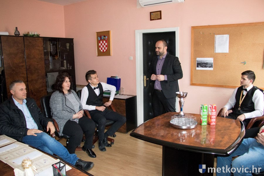 23.2.2018. - Gradonačelnik Dalibor Milan jutros je u svome uredu primio učenike Srednje škole Metković i njihove mentore, koji su na Međunarodnom natjecanju Grand Gourmet u Makarskoj te na nedavno održanom regionalnom natjecanju Gastro u Zadru osvojili visoka mjesta i plasirali se na državno natjecanje na Malome Lošinju.