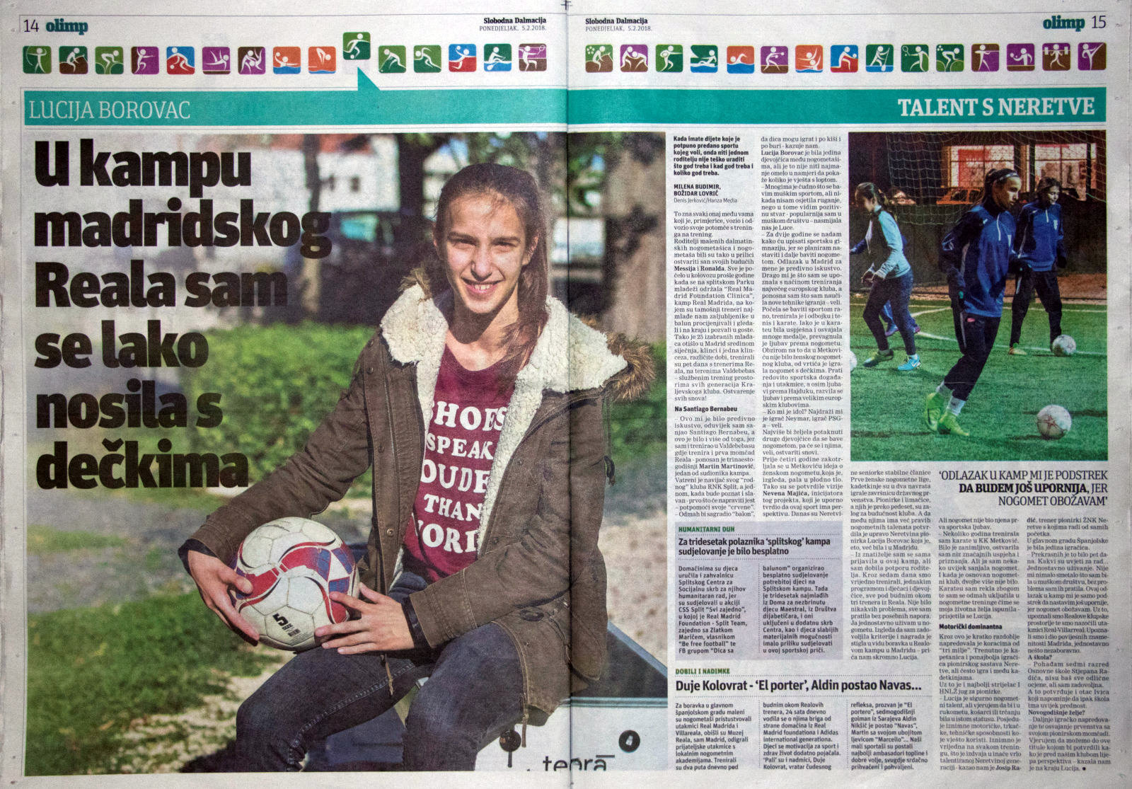 5.2.2018. - Kada imate dijete koje je potpuno predano sportu koji voli, onda niti jednom roditelju nije teško uraditi što god treba i kad god treba i koliko god treba. To zna svaki onaj među vama koji je, primjerice, vozio i odvozio svoje potomče s treninga na trening – uvodni je dio članka Božidara Lovrića o Luiciji Borovac, koji je danas u sportskom prilogu Olimp objavila Slobodna Dalmacija i čiji smo tekst digitalizirali.
