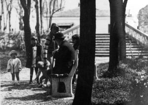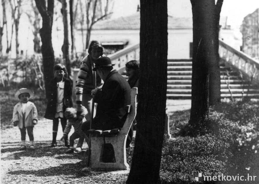12.2.2018. - Iz zbirke Marija Talajića objavljujemo detalj fotografije našega parka iz vremena prije II. svj. rata. Na njoj se vidi istočni ulaz sa stubama, a u pozadini (na mjestu današnjega GKS-a) je tzv. antimalarična stanica, koja je oštećena u ratu pa u poraću srušena.