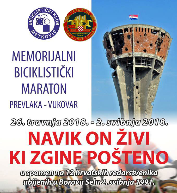 26.4.2018. - U organizaciji Biciklističkog kluba Metković i u suradnji s Udrugom veterana 4. gardijske brigade Dubrovačko-neretvanske županije sutra starta prvi Memorijalni biciklistički maraton Prevlaka-Vukovar koji se vozi u spomen na 12 mučki ubijenih redarstvenika u Borovu Selu 2. svibnja 1991. godine. Samim maratonom tako će se simbolično spojiti spojili dvije najudaljenije točke u RH: Prevlaka i Ilok.