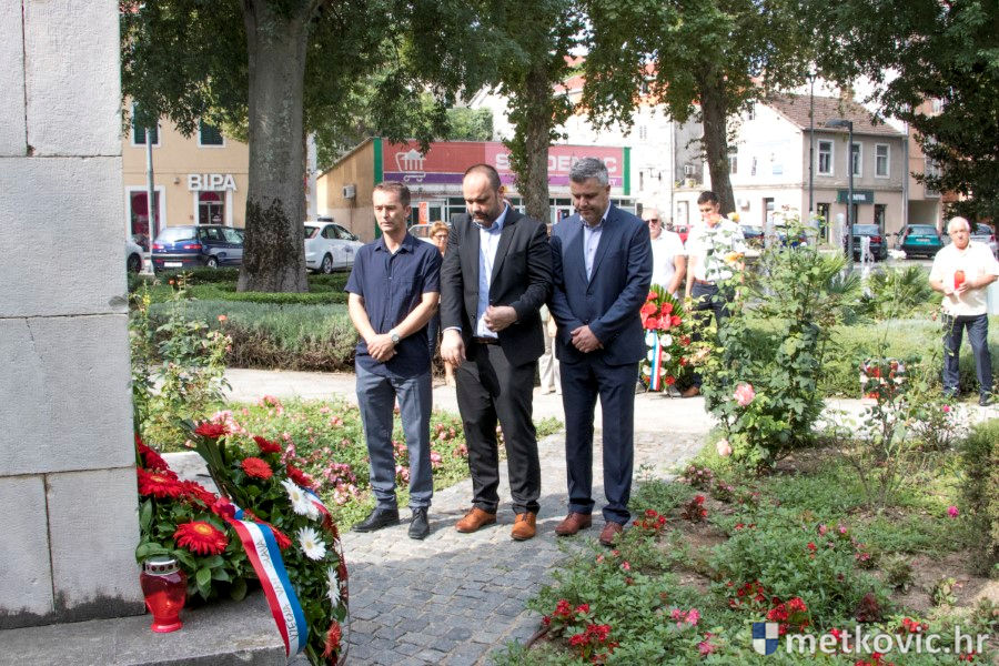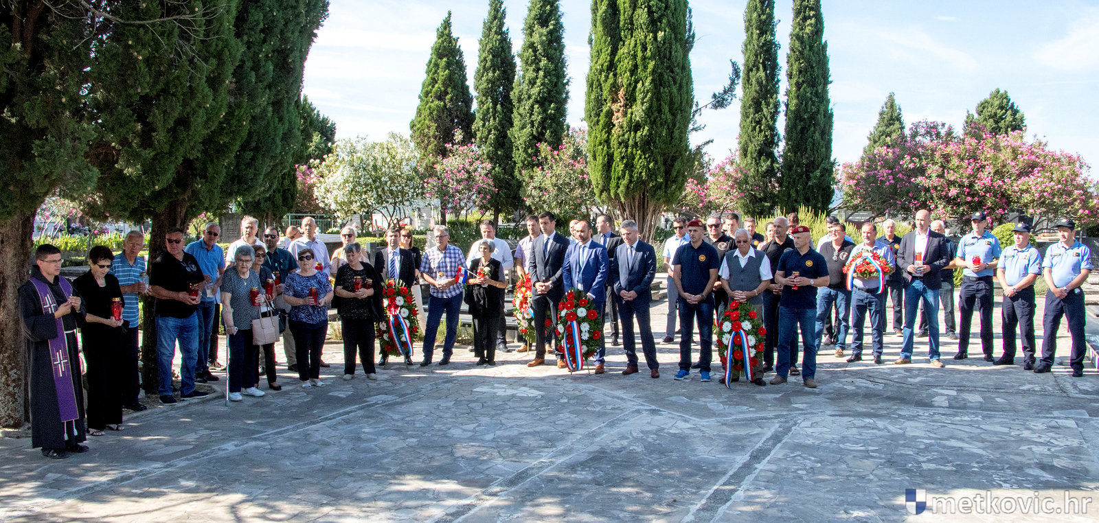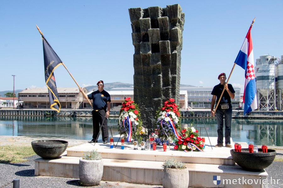 25.6.2018. - Pred Središnjim križem na Gradskome groblju sv. Ivana Nepomuka i pred Spomenikom poginulim metkovskim braniteljima na Velikoj rivi jutros su povodom Dana državnosti položeni vijenci i zapaljene svijeće.