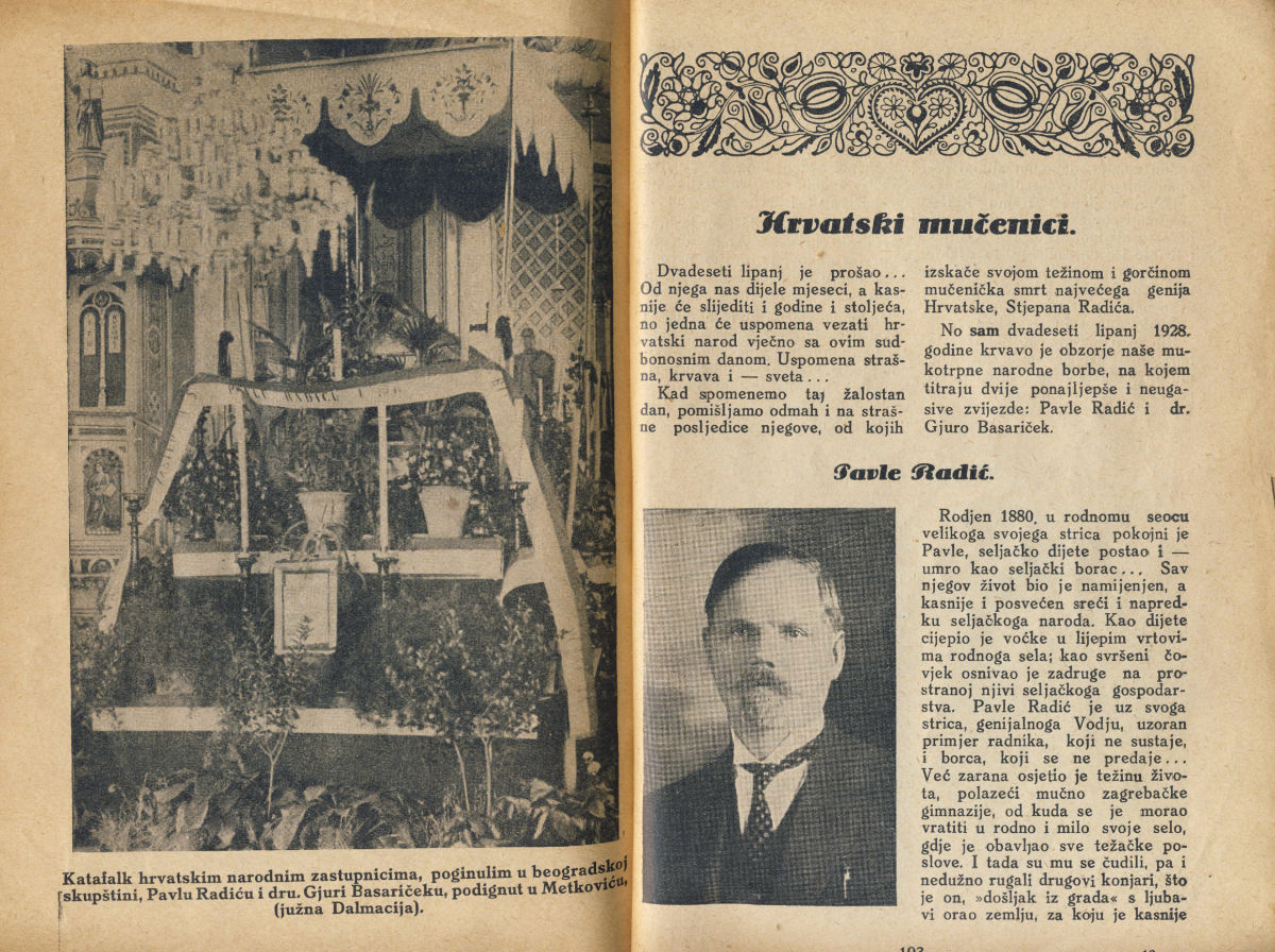 28.6.2018. - Pronašli smo jednu zanimljivu fotografiju snimljenu u ovo vrijeme prije 90 godina u crkvi sv. Ilije u Metkoviću. Na njoj je katafalk u počast Pavlu Radiću i Đuri Basaričku, koje je Puniša Račić 20. lipnja 1928. ubio u Narodnoj skupštini u Beogradu.