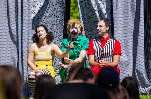 24.6.2018. - Veselim cirkuskim kabaretom na sklapanje i rasklapanje sinoć je pantomimičarsko-žonglerska družina Triola četrdesetak minuta u Gradskome parku zabavljala metkovske mališane, no i njihove roditelje.