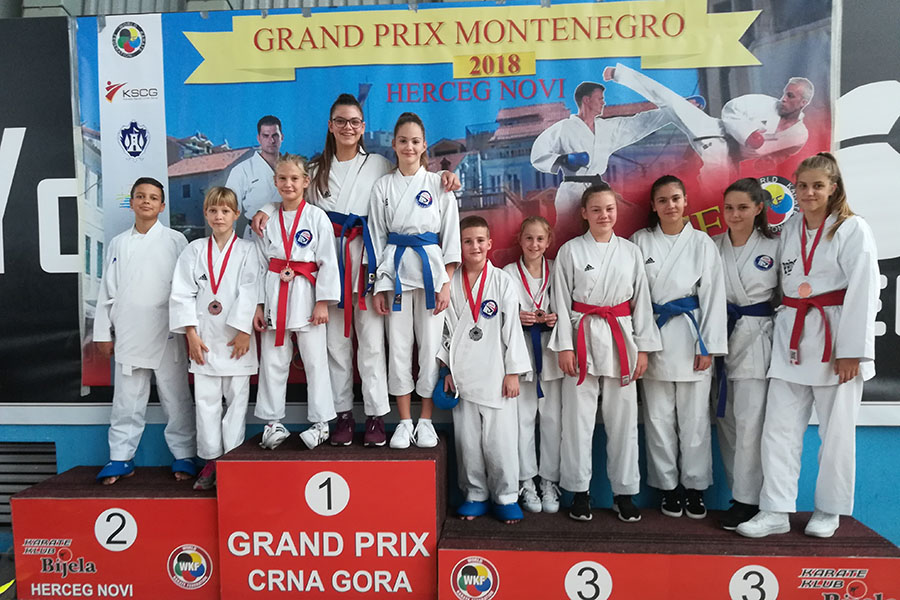 22.10.2018. - Karate-klub Metković jučer je nastupio na Međunarodnom turniru 'Grand prix Montenegro' u Herceg Novom, na kojemu su se sa 763 natjecatelja natjecala 62 kluba iz 11 zemalja. Naši su nastupili s 13 natjecatelja u 17 pojedinačnih i dva ekipna nastupa te osvojili sedam zlata, dva srebra i šest bronca.