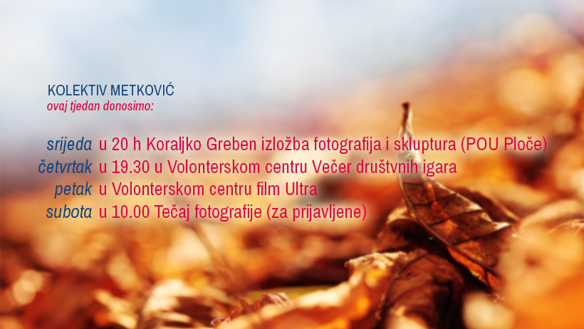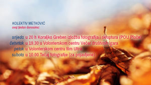 31.10.2018. - Član metkovske Udruge mladih 'Kolektiv' Koraljko Greben danas u 20 sati u Pučkom otvorenom učilištu Ploče otvara svoju izložbu fotografija i skluptura.