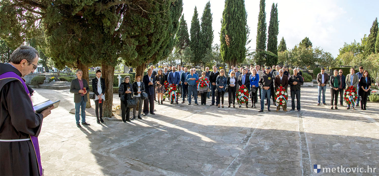 31.10.2018. - Povodom 1. studenoga, blagdana Svih svetih i Dana spomena na hrvatske branitelje iz Grada Metkovića poginule u Domovinskom ratu, jutros je na Gradskome groblju svetoga Ivana Nepomuka župnik fra Ante Bilokapić molio za odrješenje duša njihovih i svih naših preminulih sugrađana, a potom su pred Središnjim križem položeni vijenci i zapaljene svijeće.