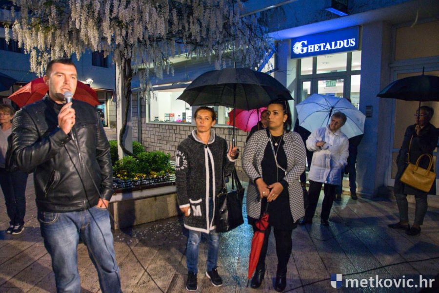 9.4.2019. - Usprkos kiši, Građanska inicijativa Sinovi i kćeri Neretve sinoć je na Trgu kralja Tomislava u Metkoviću održala mirni prosvjed, tražeći da se u Metkoviću izgradi županijska bolnica regionalnoga značaja.