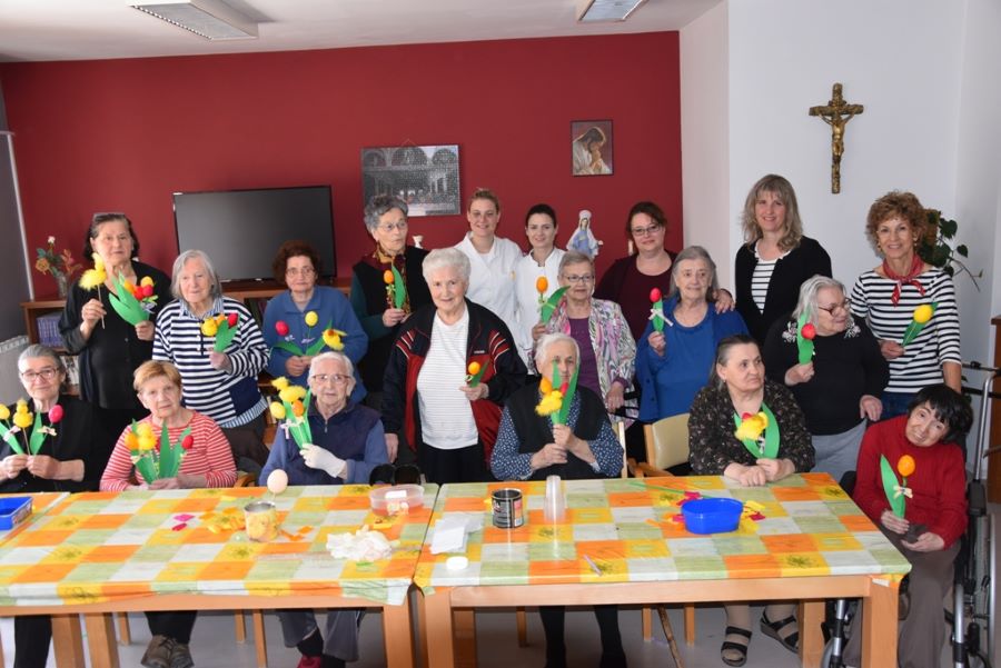 26.4.2019. - Kreativnim radionicama U susret Uskrsu korisnici i djelatnici Udruge Otac Ante Gabrić vrijedno su se pripremali kako bi uljepšali najveći kršćanski blagdan. Na jednoj takvoj radionici zajedno su sa štićenicima Doma za odrasle osobe i rehabilitaciju izradili šarene tulipane i vesele žute piliće.