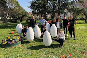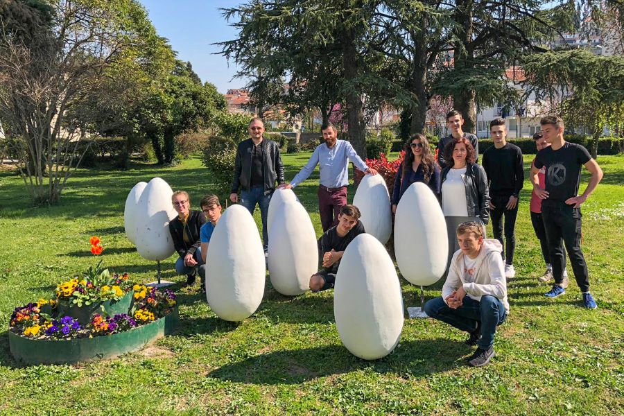 5.4.2019. - Ovih je dana veselo u radionici Srednje škole Metković. Učenici 4. b i 2. b, smjera građevinski tehničar, te 3. d, smjera računalni tehničar, sa svojim su profesorima Zoranom Grgićem, Matejom Lazarevićem, Vedranom Nižićem i Josipom Cvitanovićem te pedagoginjom Violetom Oršulić izrađivali velike pisanice.