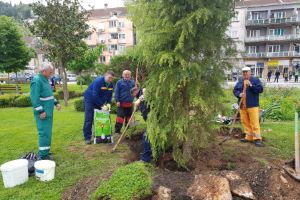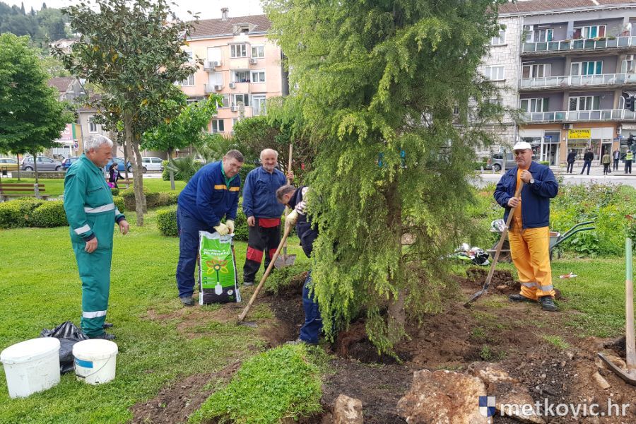 Metković, 3.5.2019. - Djelatnici Čistoće danas su u Gradskome parku posadili sedmometarski cedar i mali eukaliptus. Cedrovi su gotovo zaštitnih znak metkovskih zelenih površina, dok eukaliptusa u gradu ima tek nekoliko. Usput smo zabilježili i saniranje asfaltnoga sloja nakon radova na spoju ulica S. Radića i I. Gundulića.