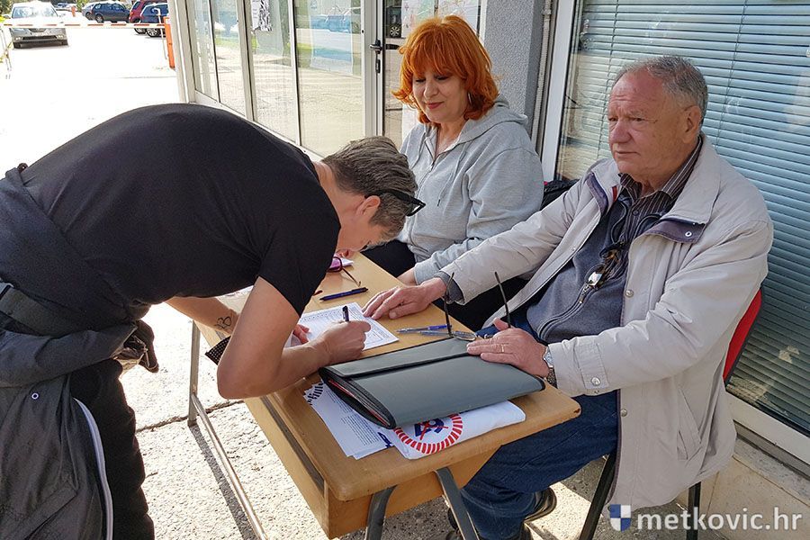 Metković, 3.5.2019. - Sindikalna inicijativa 67 je previše i u Metkoviću je organizirala prikupljanje potpisa za raspisivanje referenduma o izmjenama Zakona o mirovinskom osiguranju.
