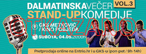 Metković, 4.5.2019. - Otkazuje se Dalmatinska stand-up comedy večer Vol. 3, koja se večeras trebala odigrati u GKS-u, zbog bolesti izvođača i nemogućnosti održavanja nastupa u punom sastavu.