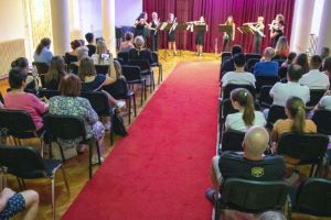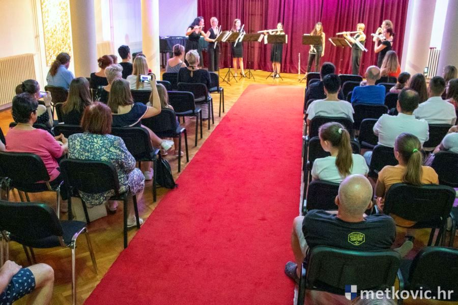 Metković, 3.7.2019. - U sklopu Metkovskoga ljeta sinoć je u Galeriji GKS-a koncert održao 'Zagrebački ansambl flauta', koji je u Metkoviću nastupio u sastavu Renata Penezić, Ana Batinica, Danijela Klarić-Mimica, Marija Esih, Lidija Ljubičić, Ivana Vukojević, Dijana Bistrović i Eva Cigić.