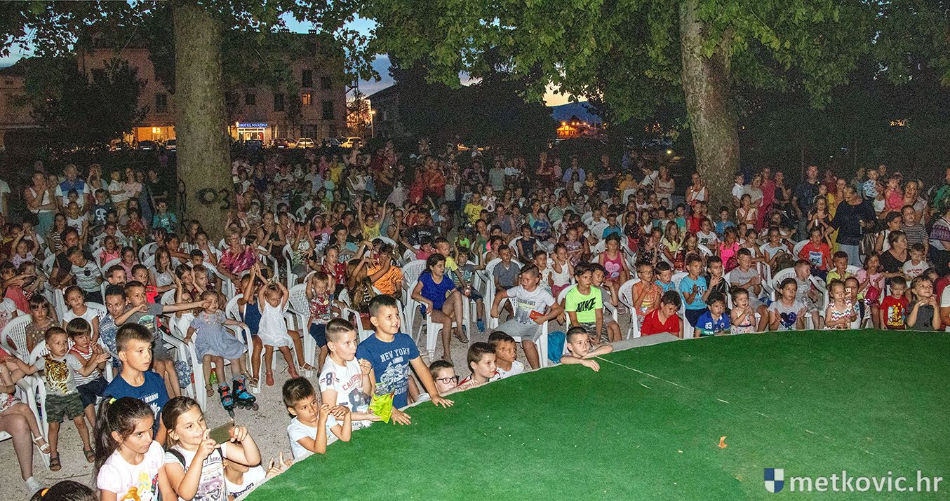 Metković, 9.7.2019. - Da je Gradski park izvrsno mjesto za događaje poput predstava za djecu još se jednom pokazalo sinoć, kada je u njemu splitska Produkcija Z izvela lutkarski mjuzikl Složna obitelj, što ga je u potpunosti osmislio Ivo Lesić.