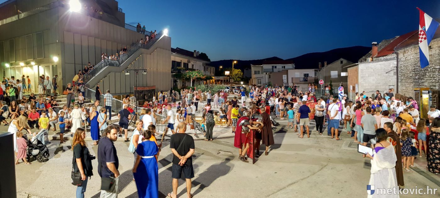 Metković, 29.7.2019. - Deveti put je u petak u Vidu pred Arheološkim muzejom Narona i na Velikoj rivi održana manifestacija 'Rimska noć u Naroni', koja okupila priličan broj publike i kojoj su organizatori AM Narona, TZ grada Metkovića, TZ DNŽ i Grad Metković upriličili degustacija rimskih delicija.