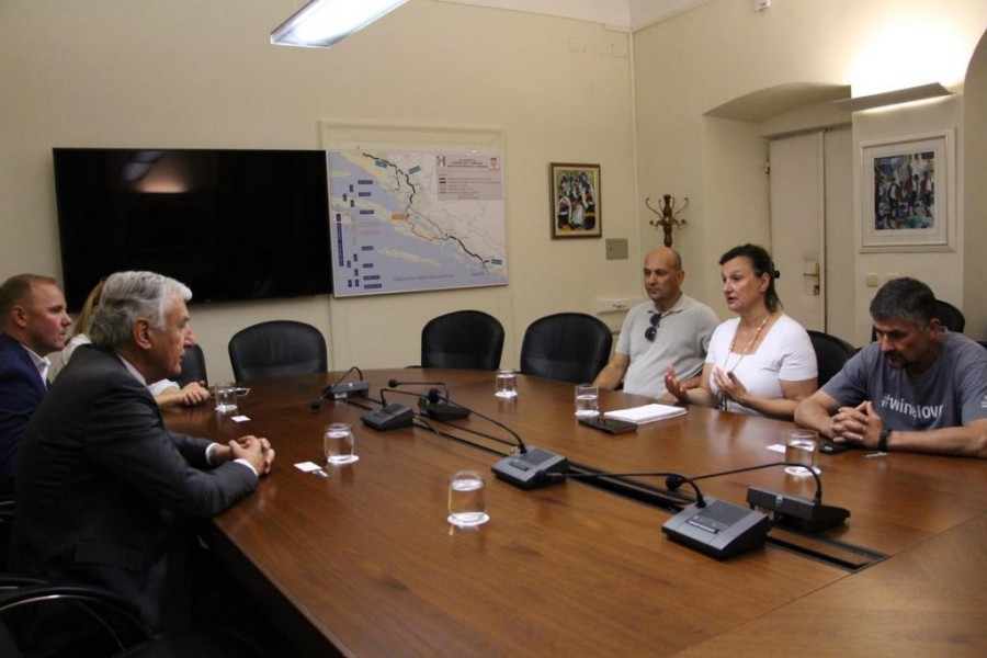 18.9.2019. - Župan Nikola Dobroslavić s pročelnikom UO za gospodarstvo i more Ivom Klaićem i direktoricom tvrtke Dubrovnik partner sastao se jučer s predstavnicom američke tvrtke ”Croatian Premium Wine Imports” (CPWI), podrijetlom Metkovkom, Mirenom Bagur te predstavnikom vinske udruge Komarna 7, Mihovilom Štimcem.