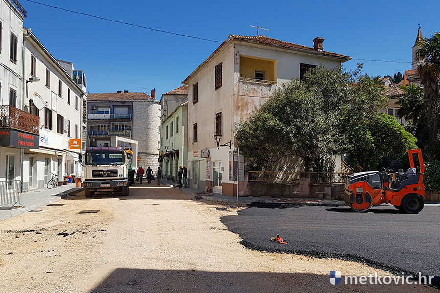 Metković, 15.4.2020. - Mole se građani da sutra ujutro (četvrtak) svoja vozila ne zaustavljaju i parkiraju na dijelovima ulica A. Stračevića i o. Ante Gabrića pokraj bivšega kina, kako bi se na gradilištu nesmetano mogli obaviti asfalterski radovi.