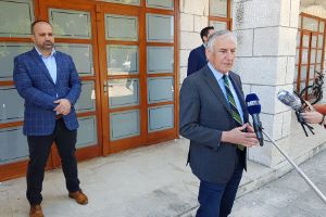 Metković, 24.4.2020. - Župan Nikola Dobroslavić sa zamjenicima Joškom Cebalom i Žaklinom Marević održao je jučer u Metkoviću sastanak s gradonačelnicima i načelnicima s područja doline Neretve na temu situacije s koronavirusom. Na novinarsko pitanje o Dnevnoj bolnici Metković odgovorio da radovi počinu za mjesec dana.