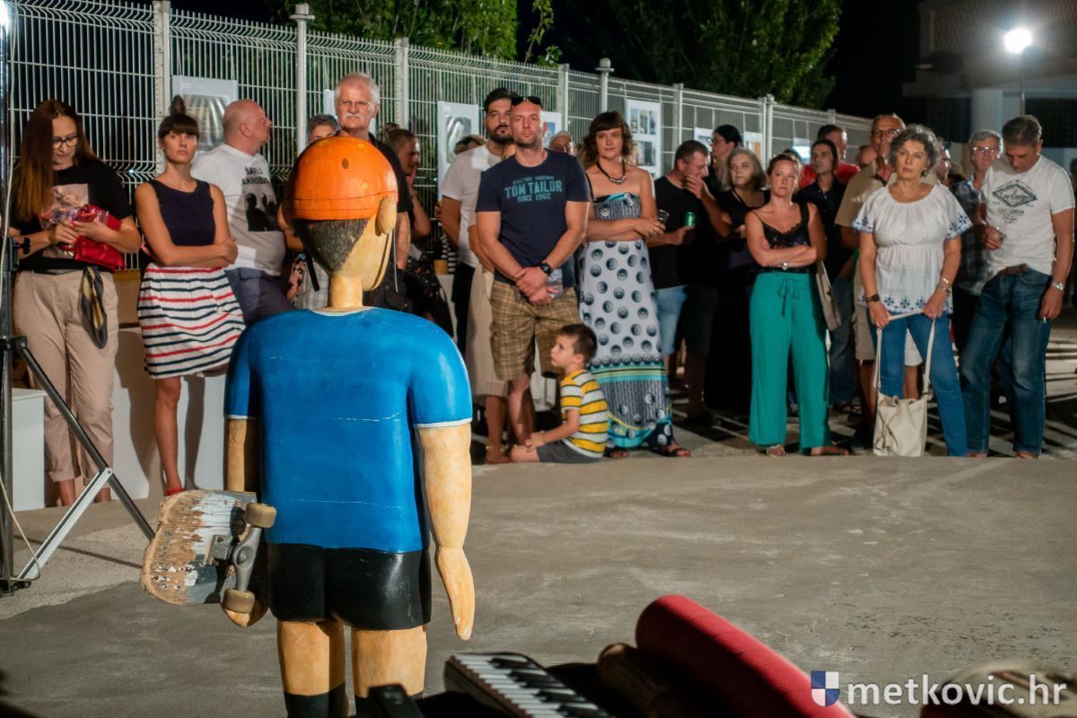 3.8.2020. - U organizaciji Građanske udruge 'Metković 600' sinoć je na Ljetnoj sceni GKS-a otvorena izložba fotografija i skulptura O'Greben Jelenka Ujdura, poznatijega pod umjetničkim imenom Koraljko Greben.