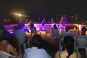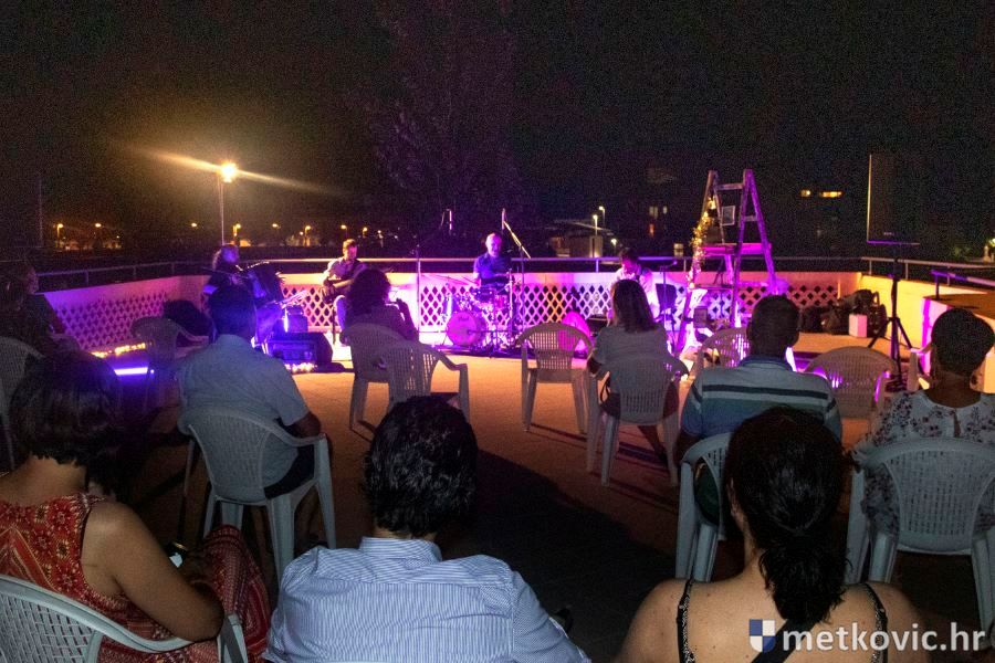 11.8.2020. - Na terasi Ljetne scene GKS-a Metković, u predivnome je ambijentu sinoć održan koncert Kvarteta Majstorović-Ipavec, koji čine Aleksander Ipavec na harmonici, Zoran Majstorović na gitari i udu (preteči lutnje), Bojan Skočilić na kontrabasu i Rajko Ergić na bubnjevima.