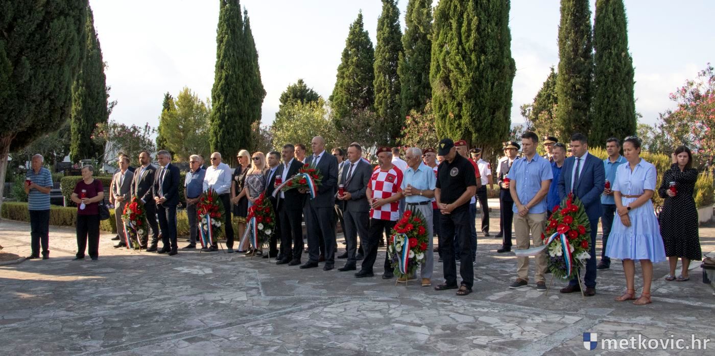4.8.2020. - Povodom Dana pobjede i domovinske zahvalnosti te Dana hrvatskih branitelja jutros su pred Središnjim križem na Gradskom groblju sv. Ivana Nepomuka predstavnici Grada Metkovića, političkih stranaka, udruga proizašlih iz Domovinskoga rata, policajaca i vatrogasaca položili vijence i zapalili svijeće za poginule hrvatske branitelje.