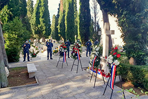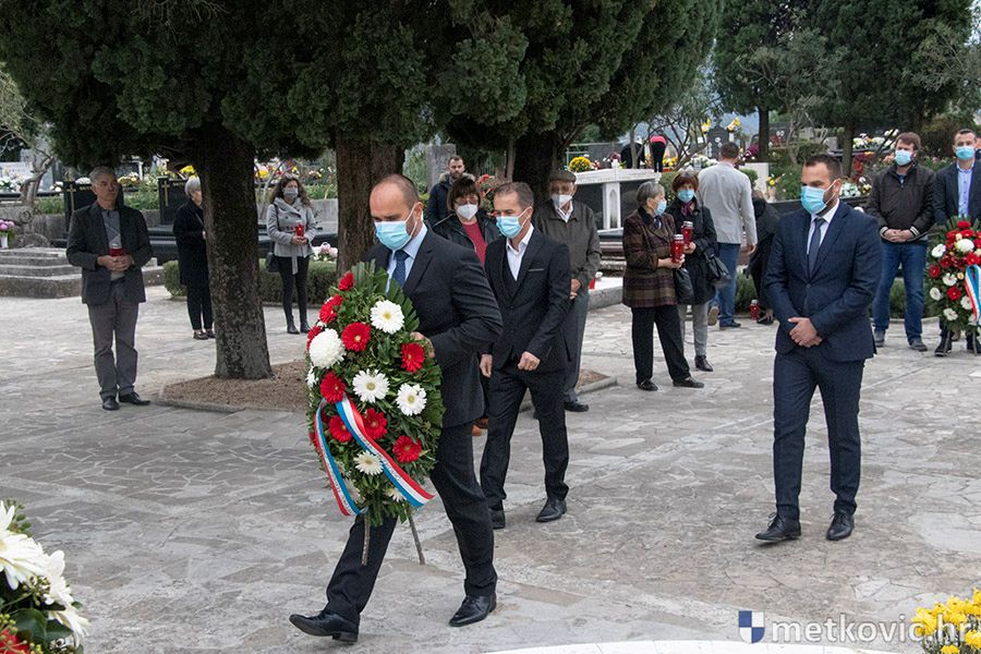 Metković, 15.11.2020. - Polaganjem vijenaca i paljenjem svijeća jutros je na Gradskom groblju sv. Ivana Nepomuka obilježena 29. obljetnica osnivanja 116. brigade HV-a.