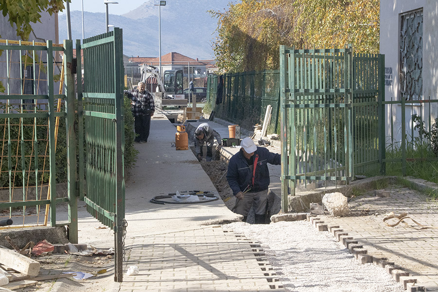 Metković, 19.11.2020. - U tijeku su radovi na projektu odvodnje viška voda u obuhvatu Dječjega vrtića Metković. Projekt je to vrijedan 355 tisuća kuna kojega u potpunosti financira Grad Metković, čime će se riješiti problem viška vode koji postoji još od otvorenja vrtića 2003. godine.