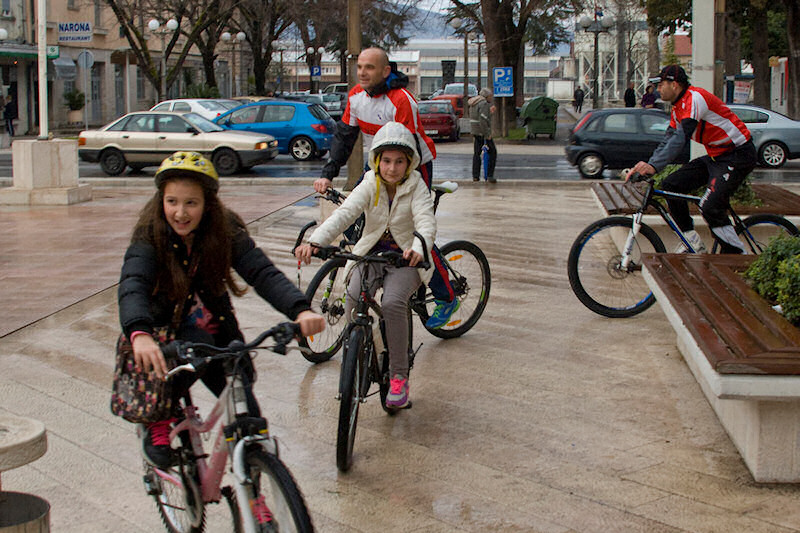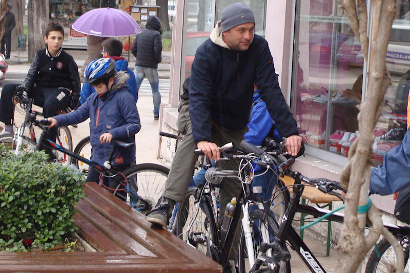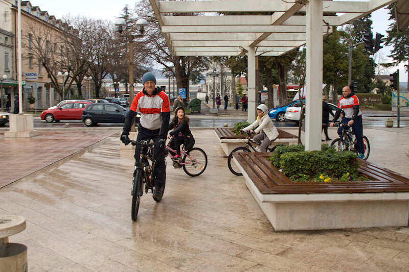 grada. Dvoje biciklista; Ruđer Bošković i Biljana Taslak na Trgu su sišli sa