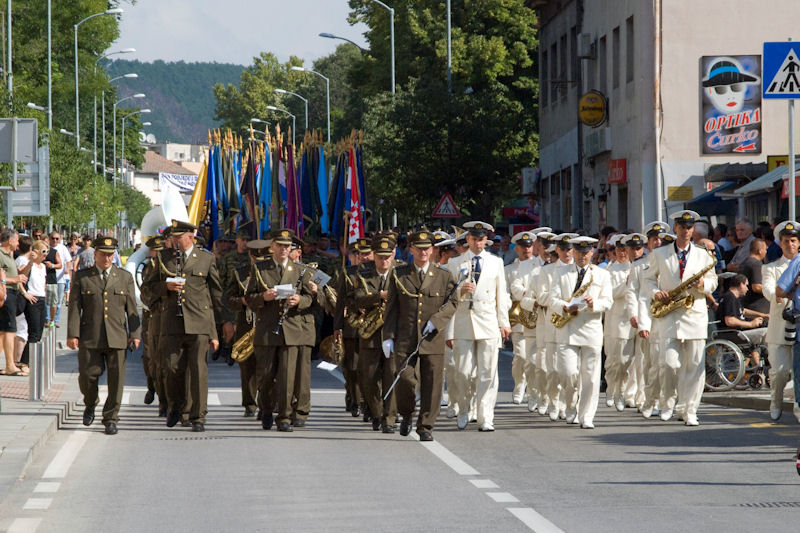 pravilnu rasporedu i držanju stijega prolaze kraj nas i zastaju pred Trgom. Meni