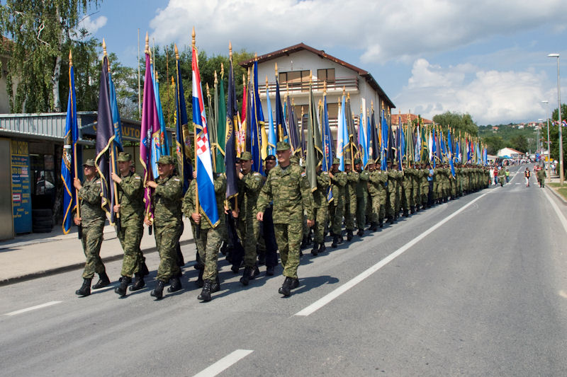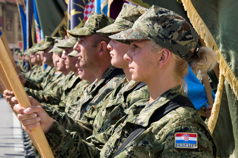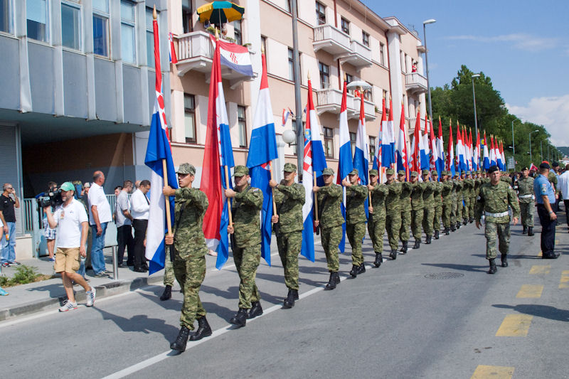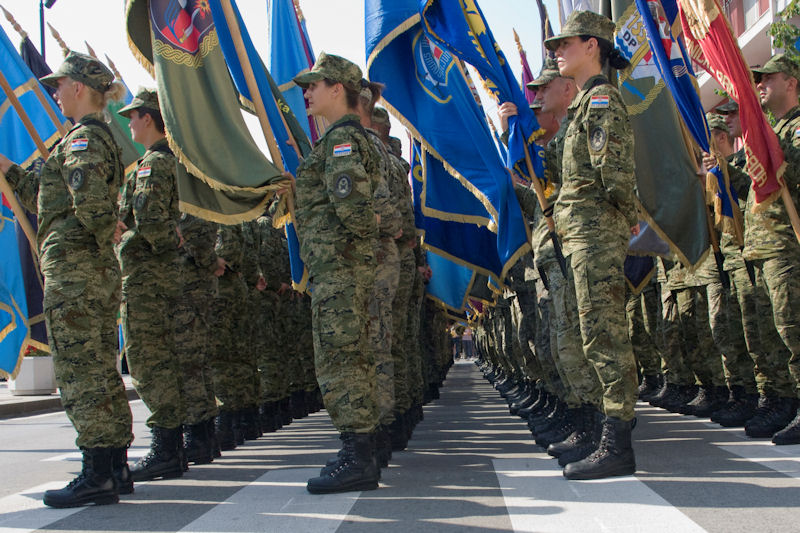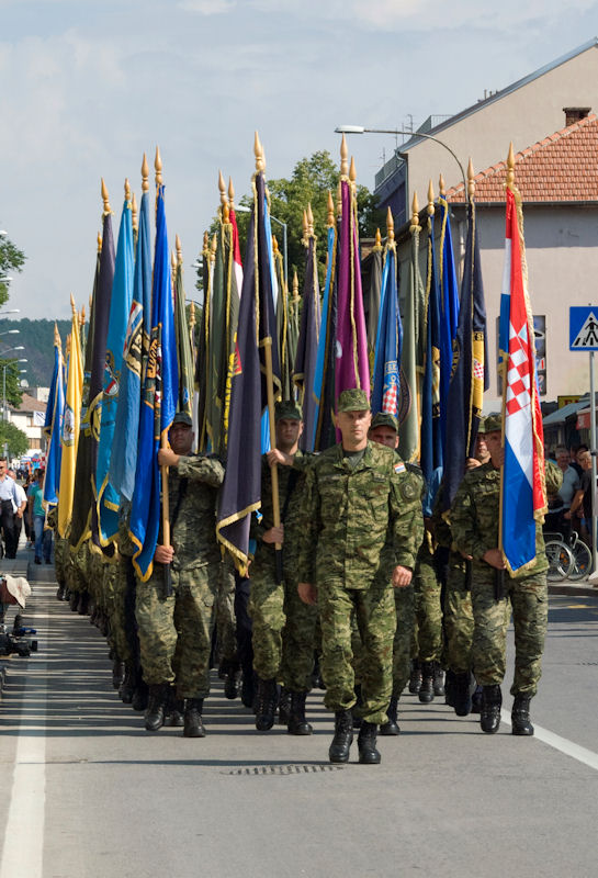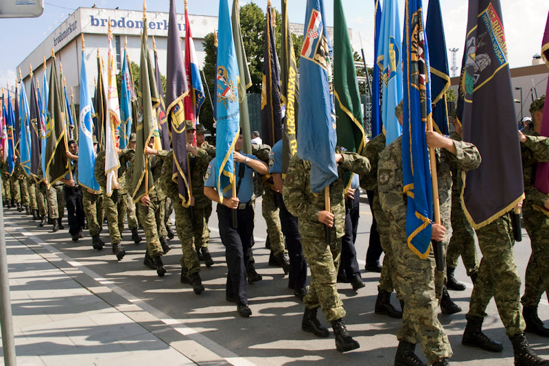 valjda, prema da Vincijevu kanonu, predvodi četverorede sa zastavama hrvatskih