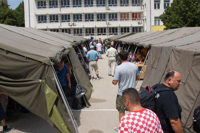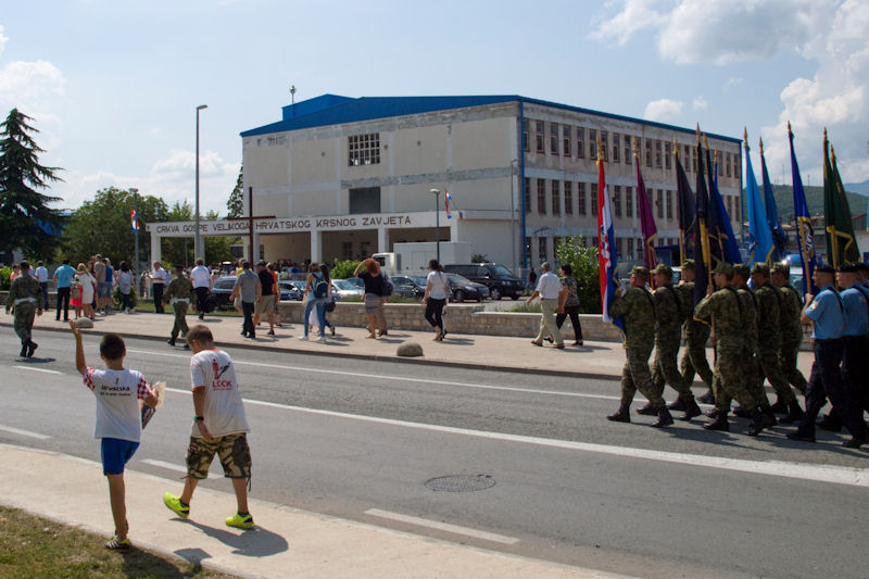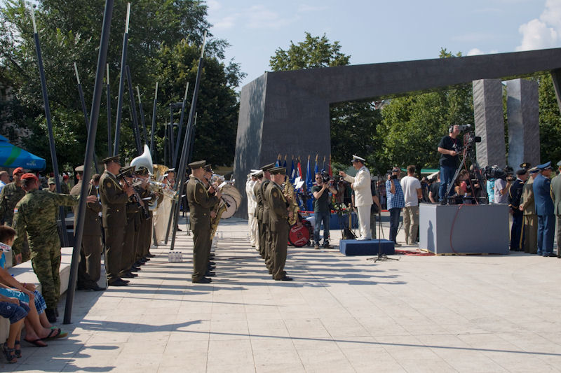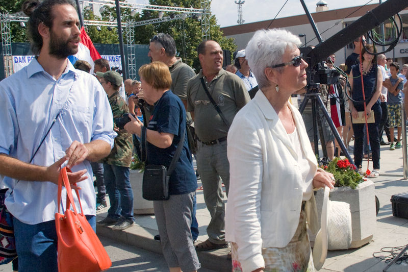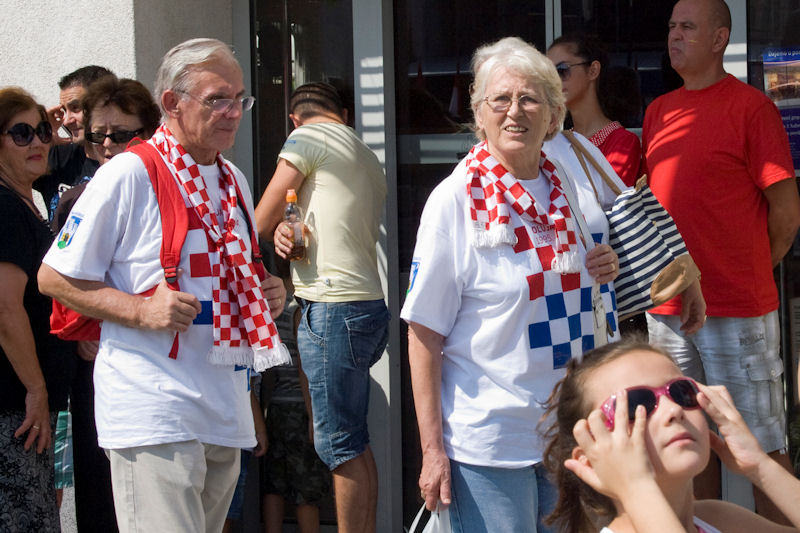 smo na vrijeme, možda i uranili pa se ne vidi neka gužva. Usput, srećemo generala Rojsa s kojim se naši pozdravljaju. Na Trgu zauzimamo mjesta u hladovini i