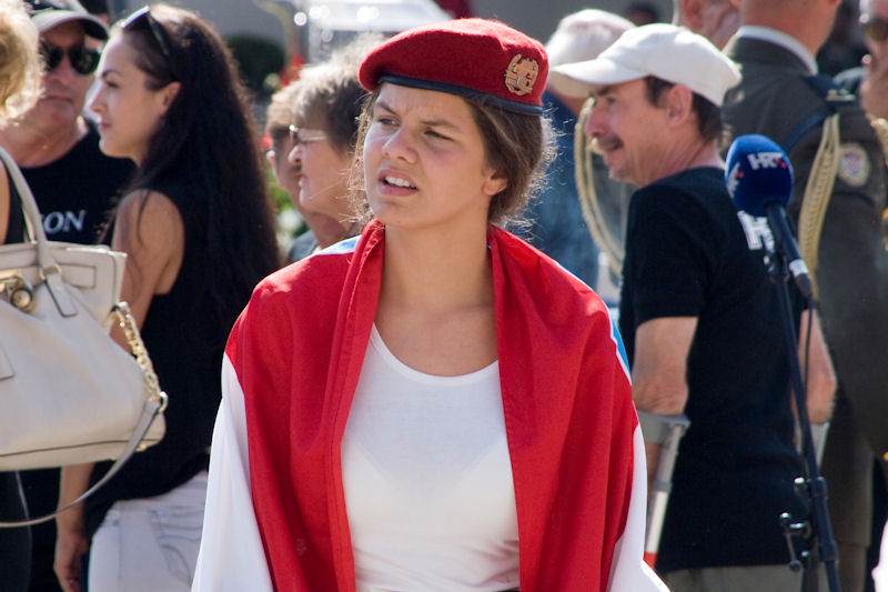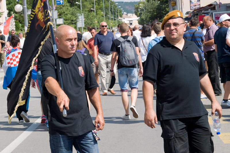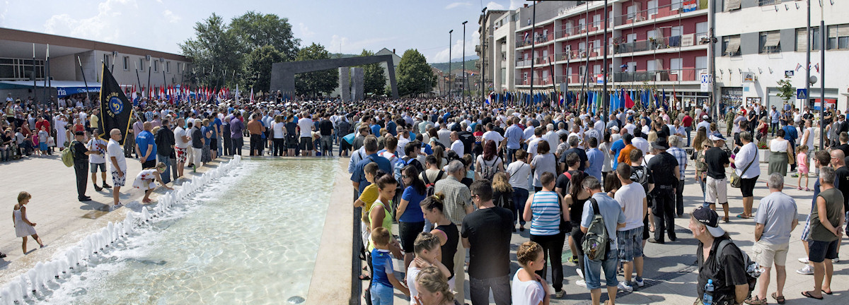 koji su se ogrnuti hrvatskim zastavama ili drugim znakovljem kretali Trgom. Bilo je