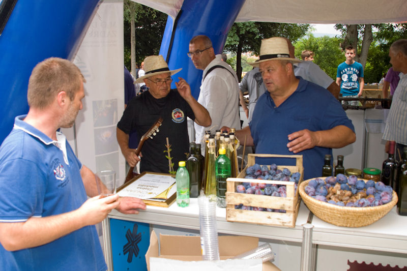 putu zastajemo uza štand naših Modro-zelenih koji nas nude rakijom od