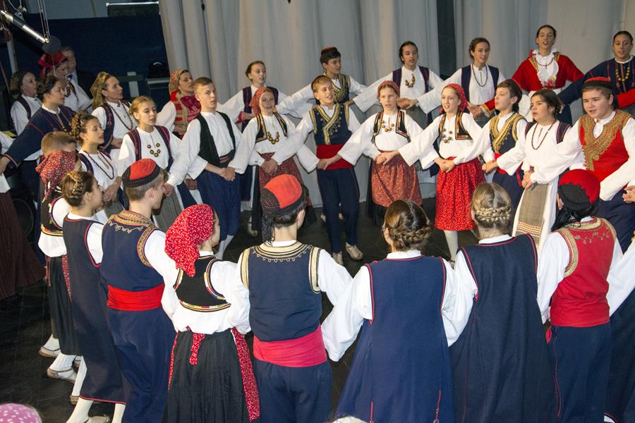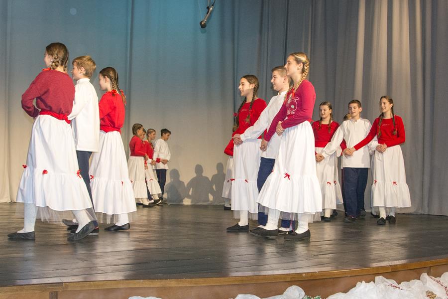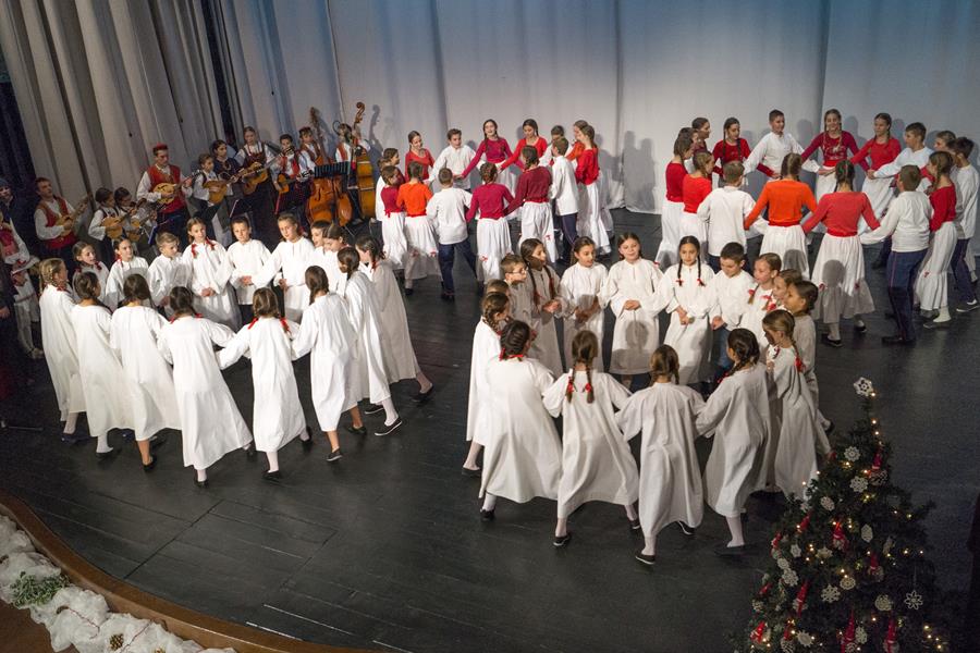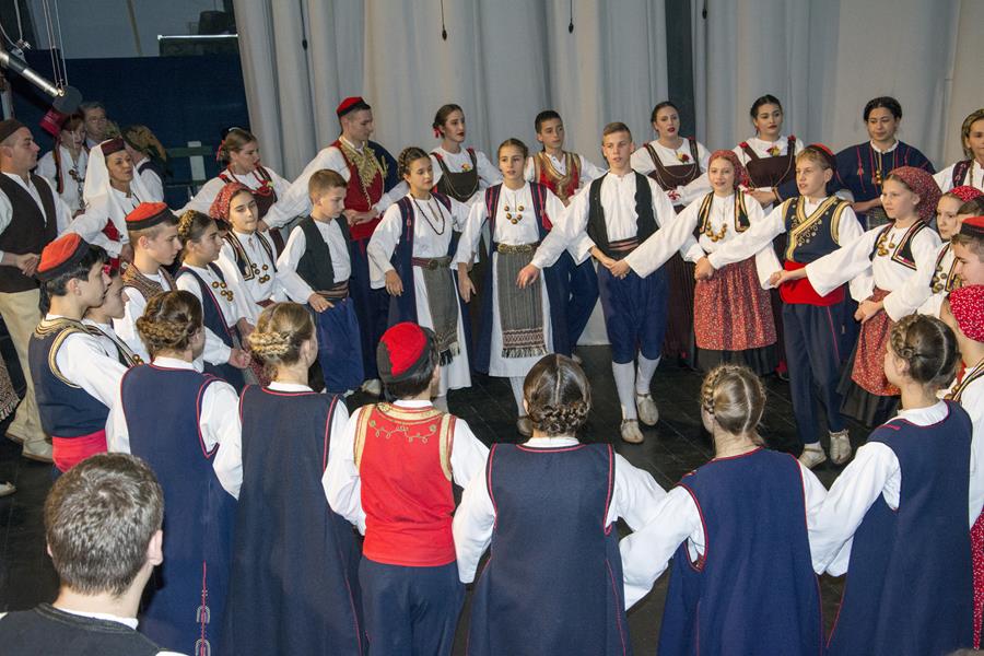Voditeljica Romana Gabrić prvo je najavila najmlađu skupinu koja se publici predstavila veselom božićnom koreografijom. Slijedile su starije i iskusnije skupine, a nakon što su KUD-ove veteranke otpjevale tradicionalni hrvatski napjev Dobar večer dobri ljudi na pozornicu su stupili članovi Folklornoga društva Šaltin iz Hvara, kojemu su Metkovci ove godine bili gosti na njihovoj proslavi 40-te obljetnice rada. Hvarani su u svojim lijepim nošnjama izveli poznate Forske tance i zaslužili velik pljesak.