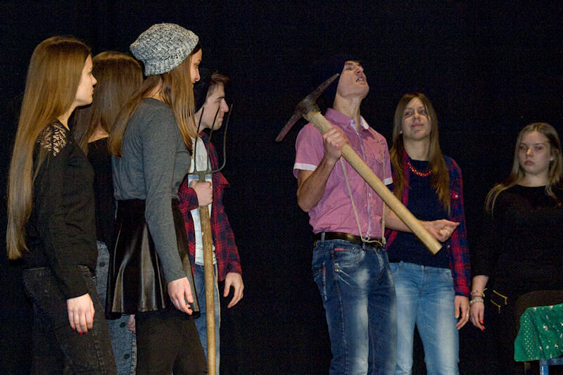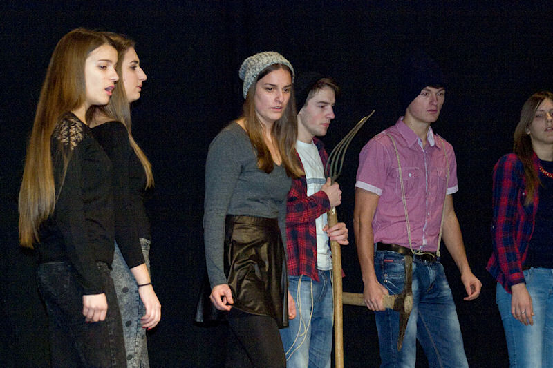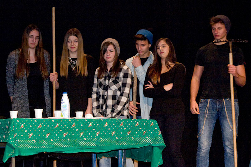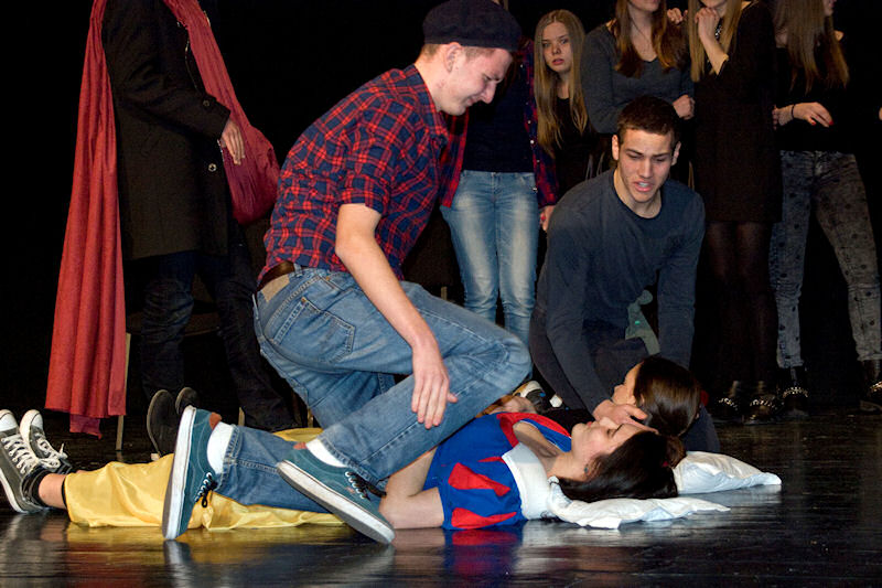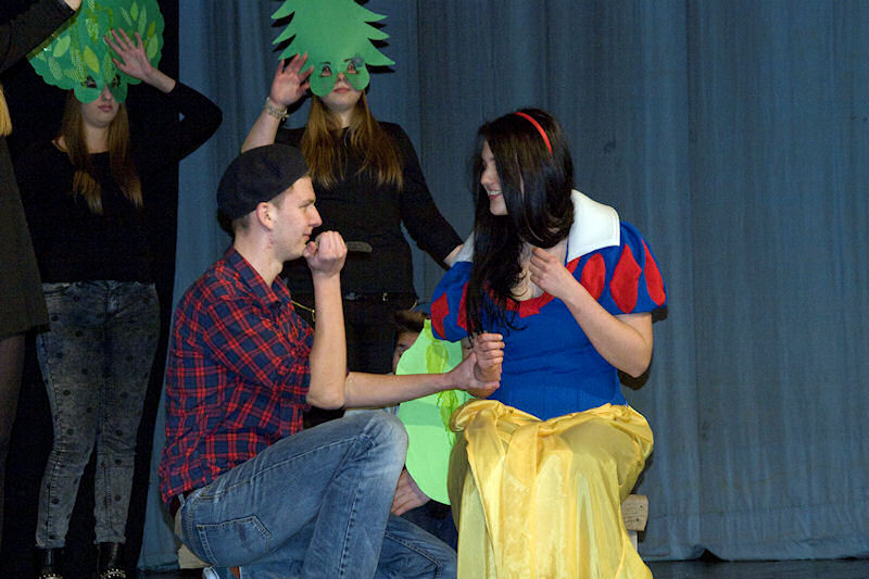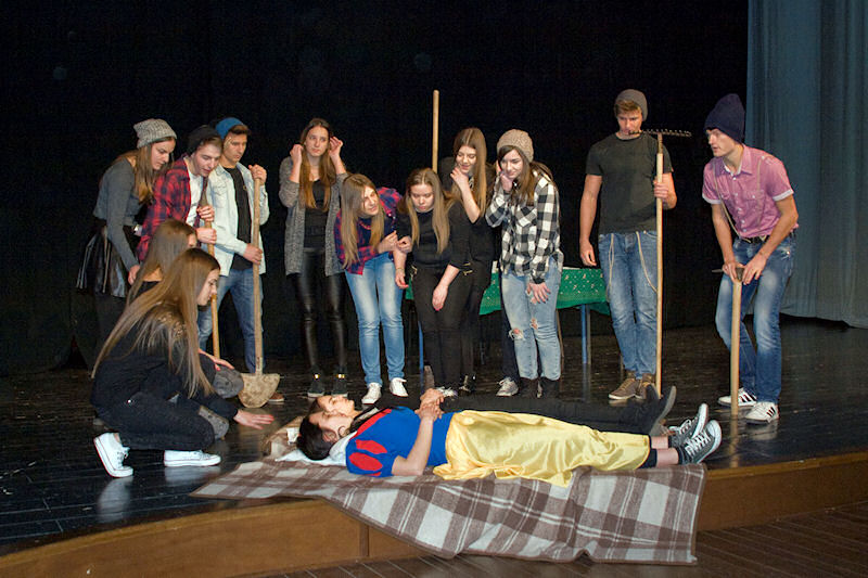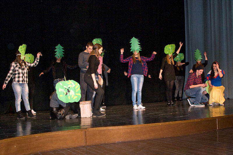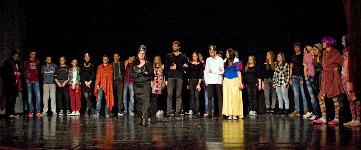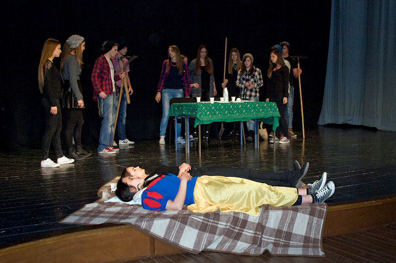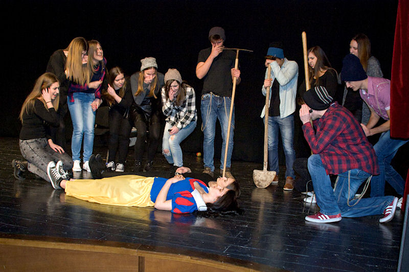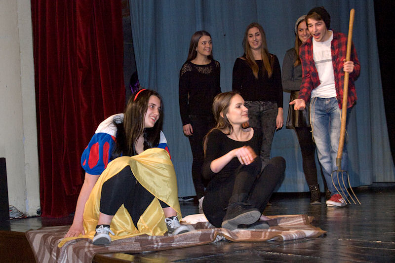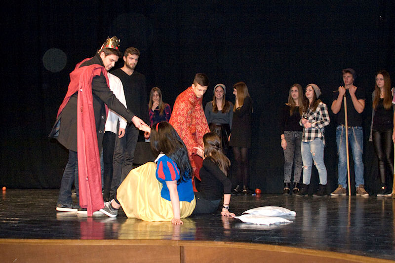 Nakon brušenja i poliranja po malim školskim scenama sinoć su učenici Gimnazije Metković na velikoj sceni Gradskog kulturnog središta Metković pred više od pet stotina posjetitelja uprizorili poznatu bajku Wilhelma i Jacoba Grimma Snjeguljica i sedam patuljaka (Schneewittchen).