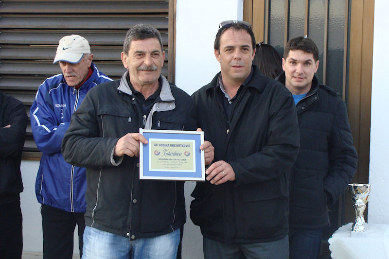 između poluvremena predsjednik Uprave ONK Metković Željko Parmać predao je
