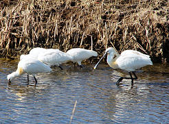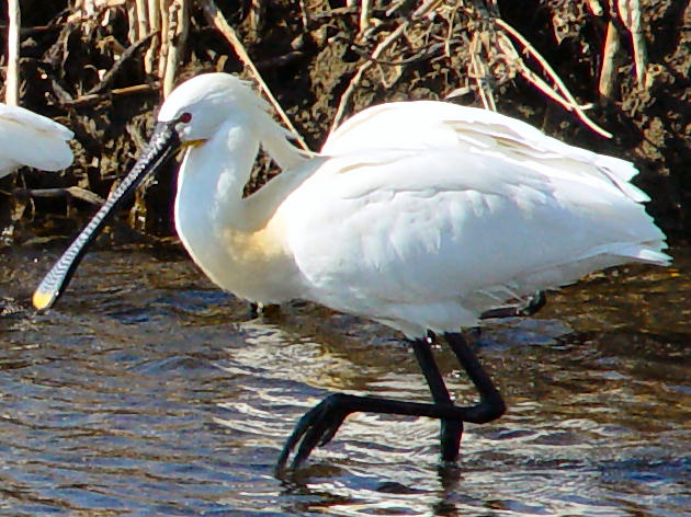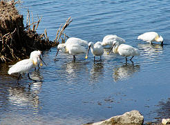 hodajući po plićaku tražeći u mulju svojim žličastim kljunom