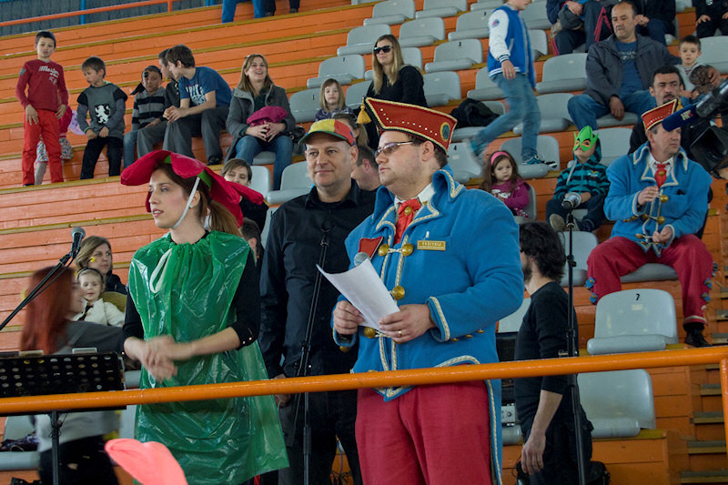 Ne sjećamo se da je ikada dvorana bila toliko krcata pa je dobar dio roditelja s maškaranom djecom prešao u na istočnu tribinu. Najprije su se predstavile maškarane skupine iz Dječjega vrtića Metković te Dječjega vrtića Leut, a nakon toga je gradonačelnik Metkovića Božo Petrov najstarijemu članu Maškarskoga odbora Mariju Ketiniju simbolično predao ključ grada na deset dana, koliko u Metkoviću traju pokladne svečanosti.