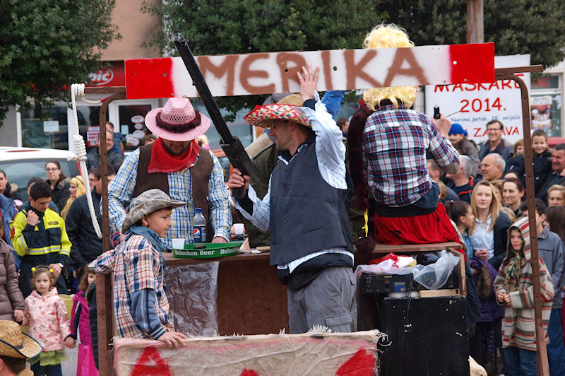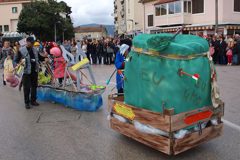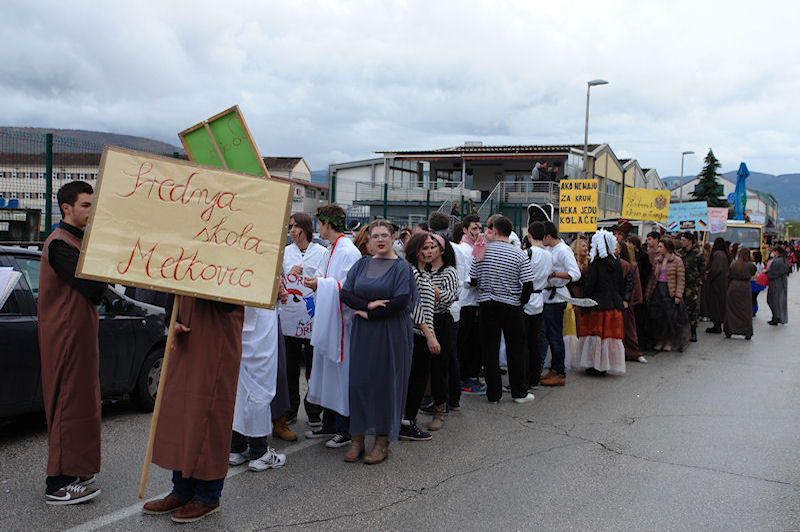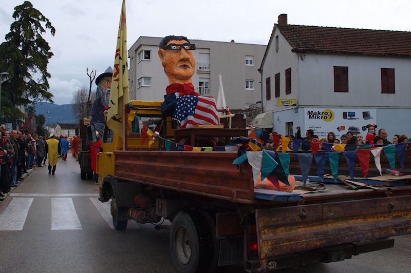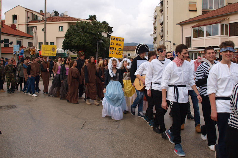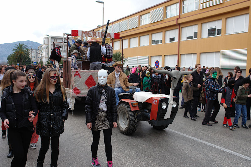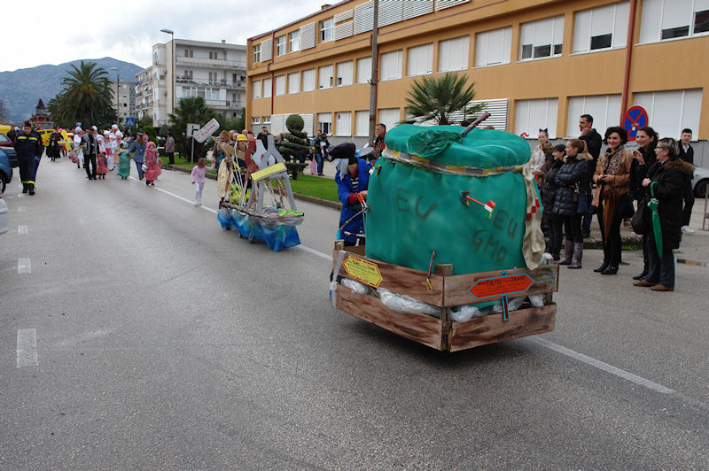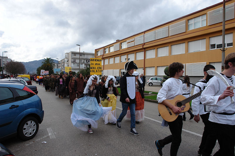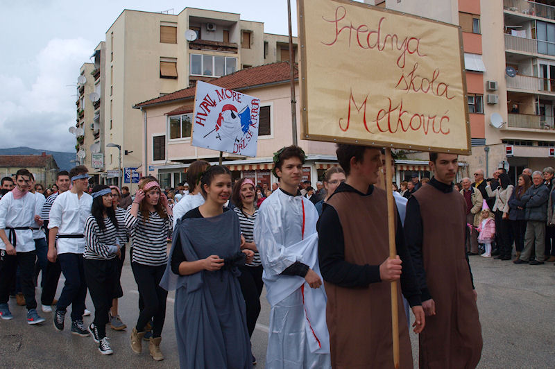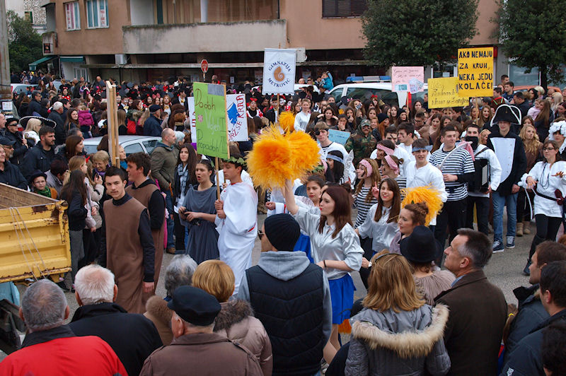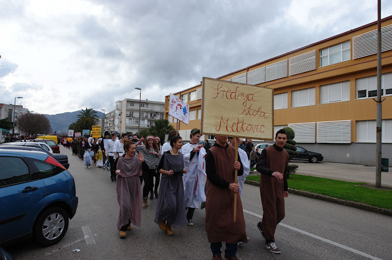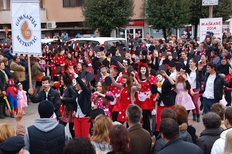 U nedjelju je u Metkoviću gradskim ulicama prošla velika maškarana povorka u koju se, unatoč vremenu i recesiji uključilo desetak maškaranih skupina od kojih su neke imale više od sto maškaranih. Najbrojnija je sa 180 maškarane djece bila skupina Morska trava iz OŠ don Mihovila Pavlinovića, potom su slijedili učenici Gimnazije Metković i Srednje škole Metković te učenici OŠ Stjepana Radića. Bilo je zanimljivih kreacija pa tročlanome žiriju nije baš bilo lako donijeti odluku koje su najbolje. Ipak, najvećim brojem glasova pobijedila je skupina Merika - rodeo, a drugo je mjesto temeljem masovnosti i kreativnosti dodijeljeno OŠ don M. Pavlinovića. Iako je Gimnazija i ove godine imala atraktivnu masku, odlučeno je da se trećim mjestom nagradi maškarana skupina iz Pruda koja već dugi niz godina sa svojim specifičnim maskama i nastupom te Markom Krnjevalom sudjeluje u povorci. Podijeljene su i tri dodatne nagrade koje su osvojili Močvara airlines, Kuhari i skupina koja se nazvala Most maškaranih skupina, ili slično tome. Nakon što je povorka prošla gradom na Trgu kralja Tomislava pročitana je optužnica protiv Marka Krnjevala čije se suđenje nastavlja u utorak, 4. ožujka u 18 sati.