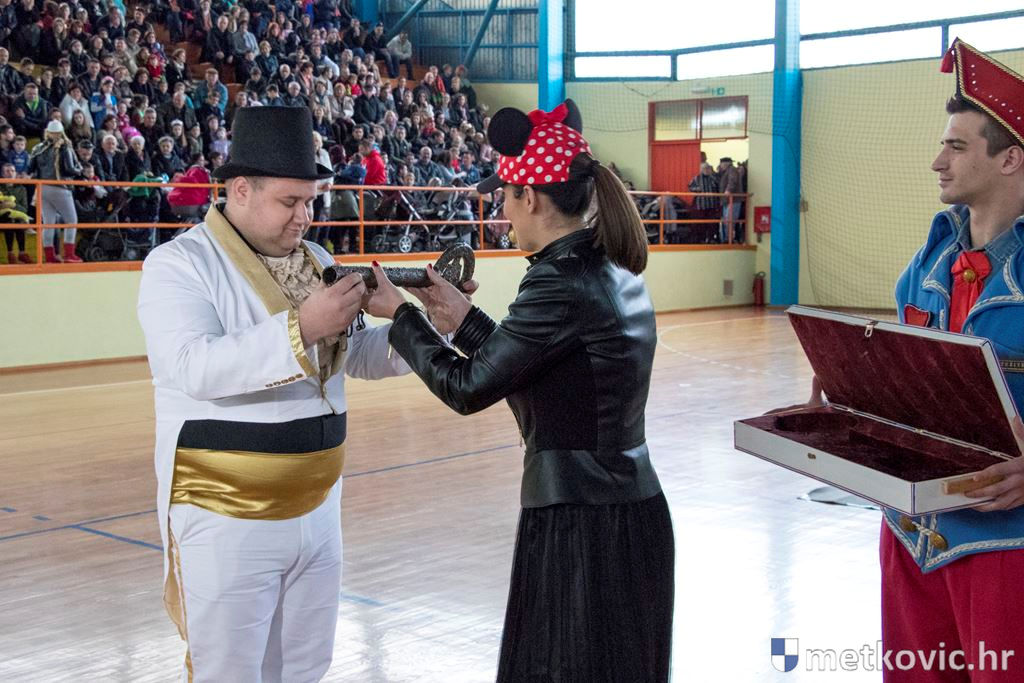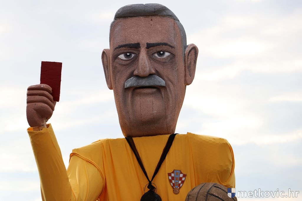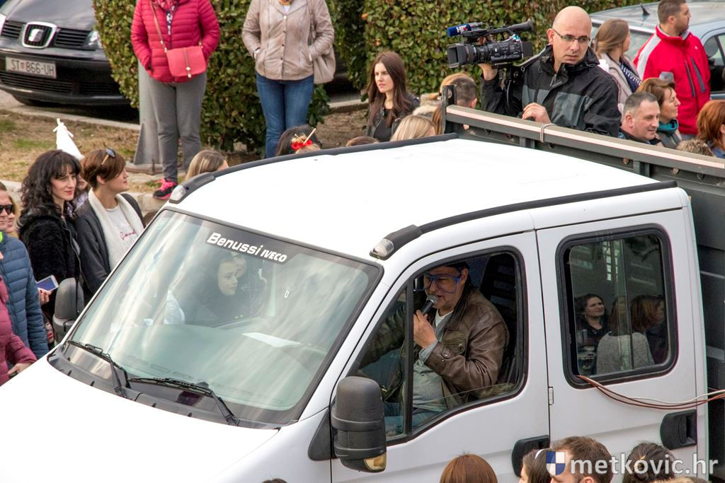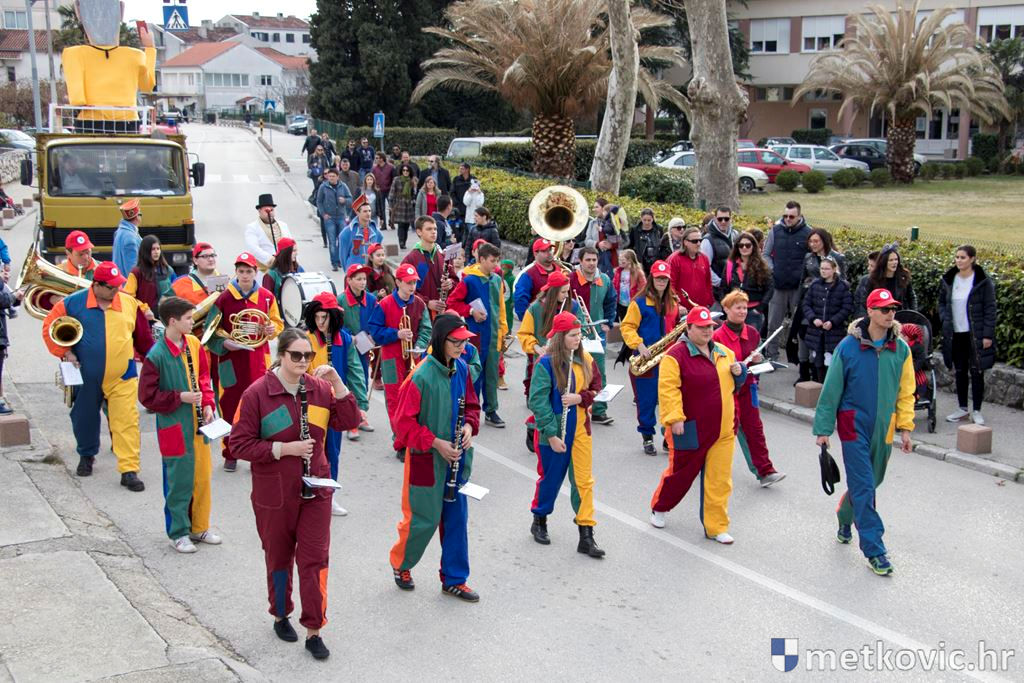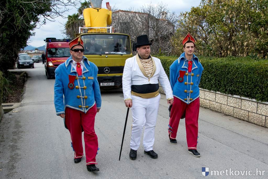 Sve je u bezimenoj metkovskoj 'ulici', tj. putu uz Vrtić, bilo kao po špagu. Gradska je glazba na čelu s meštrom Stipanom Krmićem 'upuhivala' svoje instrumente, tete su redale djecu, a na začelje je tradicionalno stao žuti Dodigov kamion s ovogodišnjim Markom Krnjevalom. Pred njim su stajala trojica glavonja od maškara na čelu s glavnim glavonjom Brankom Medakom. Čini se da je ovogodišnjemu Marku lik 'posudio' Mateo Beusan – Oko Sokolovo sa znakovito uzdignutom crvenim kartonom. Kome je upućen možemo pogađati, no ne više od jednom.