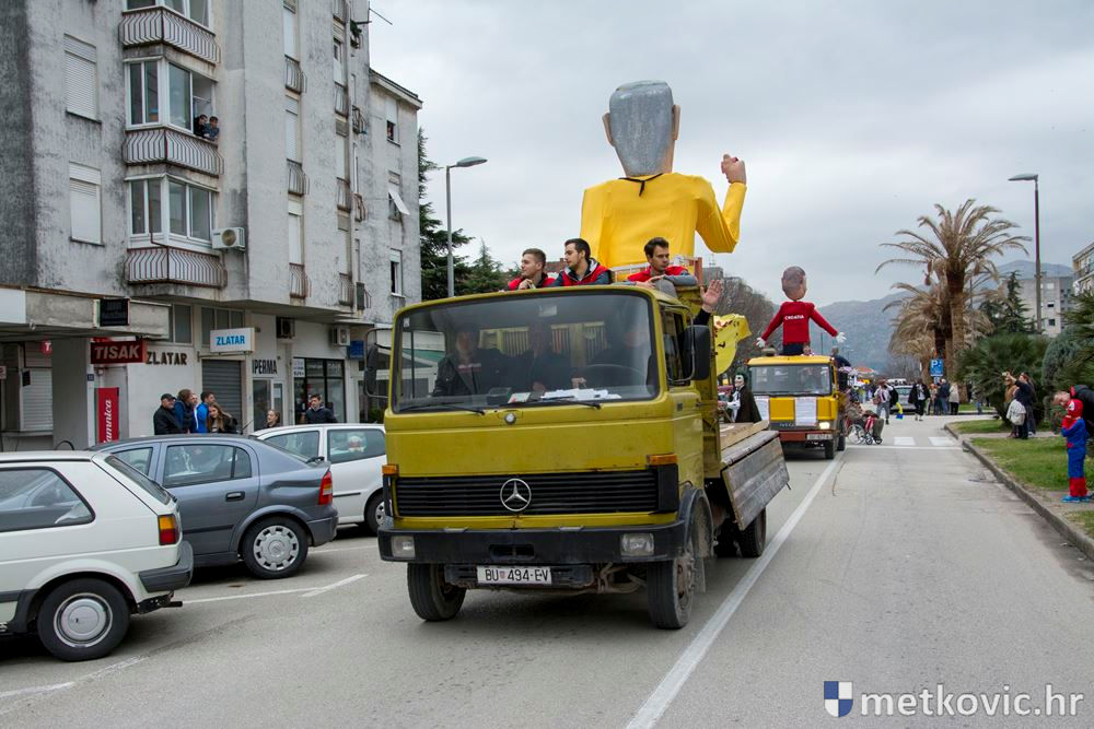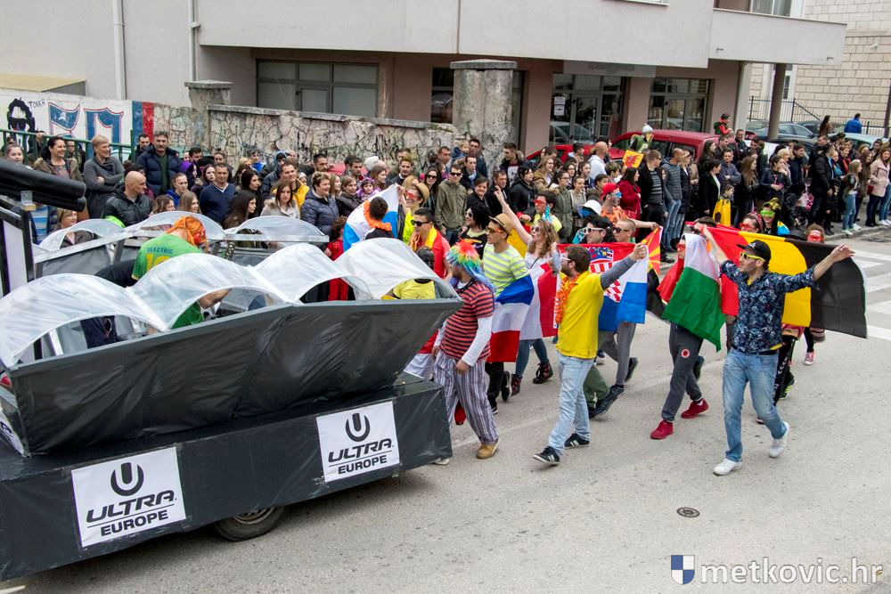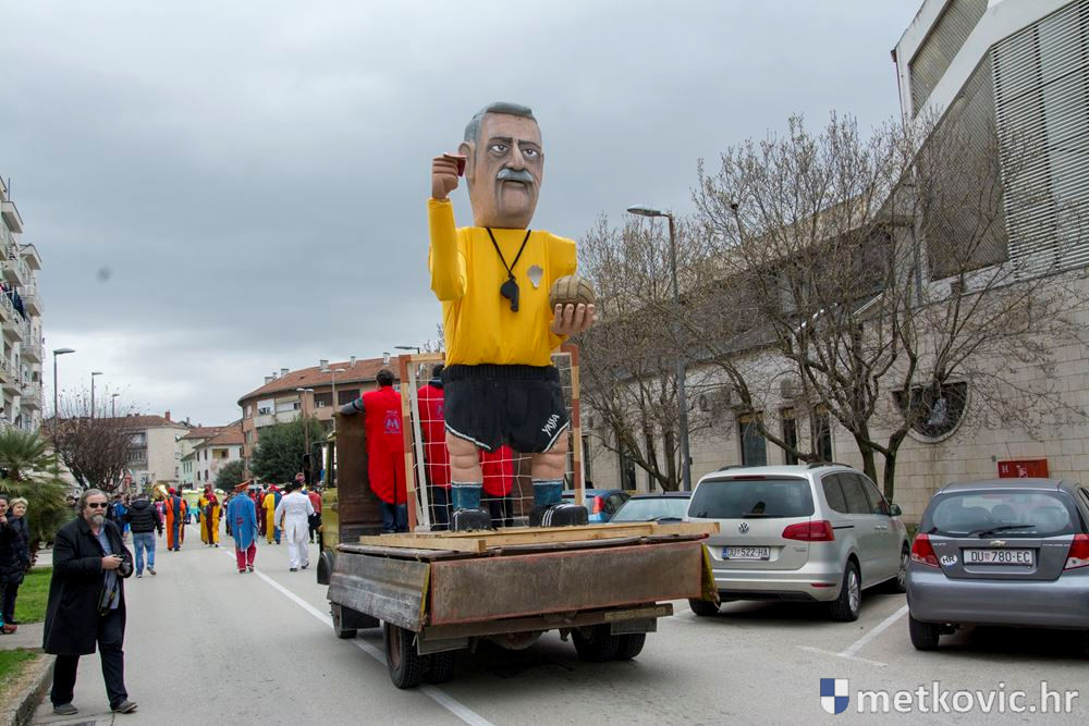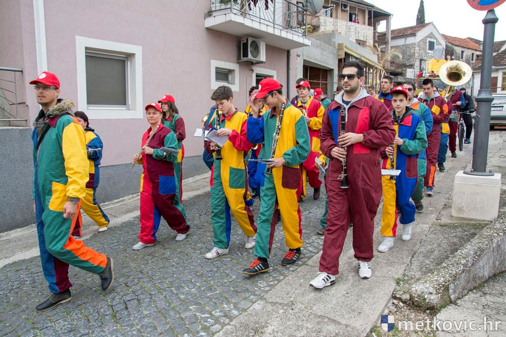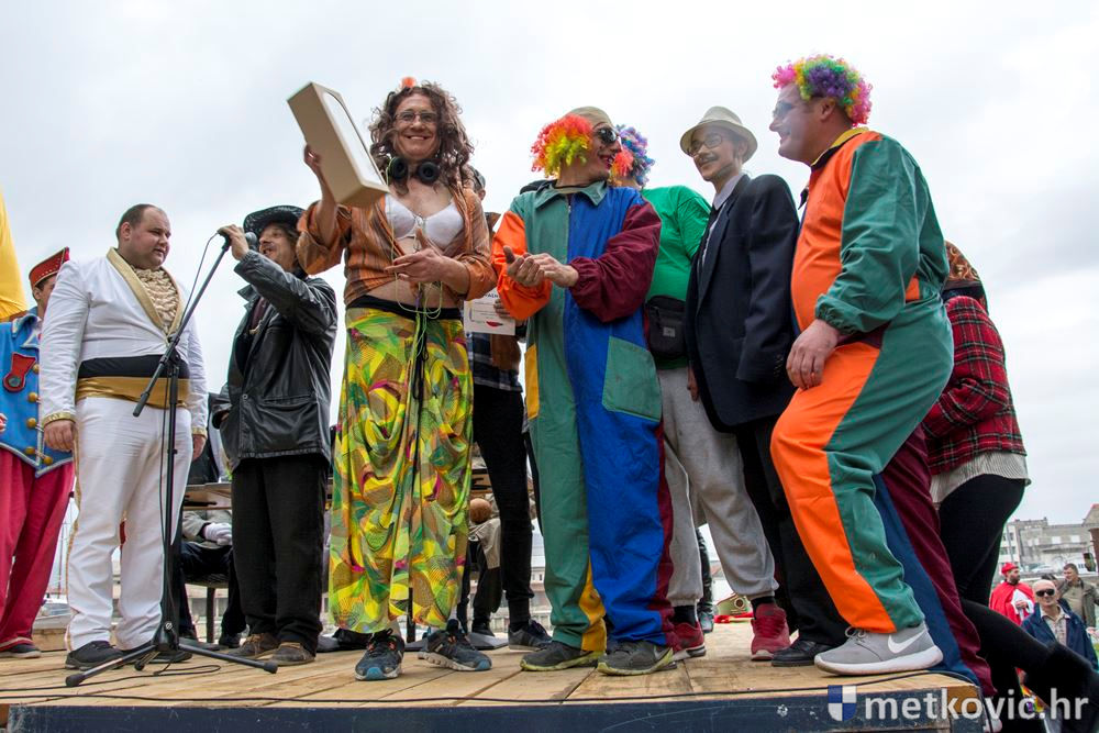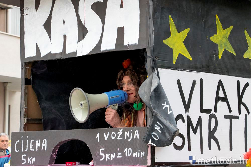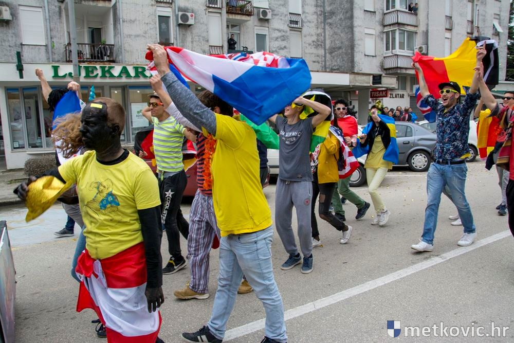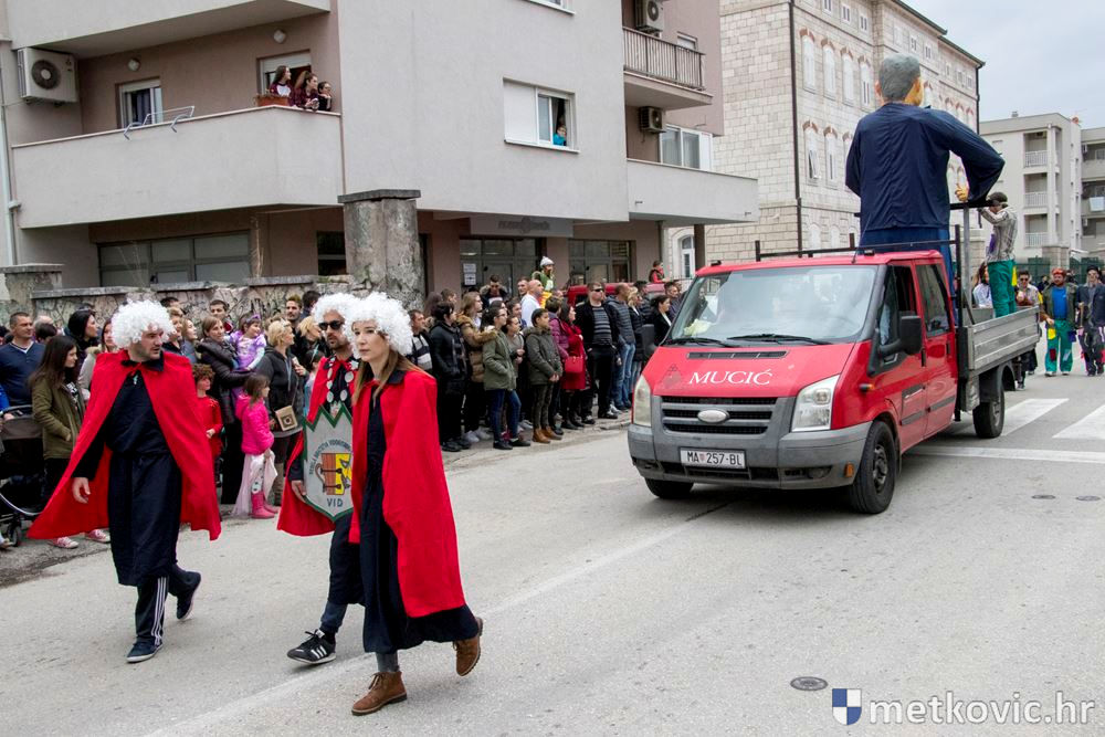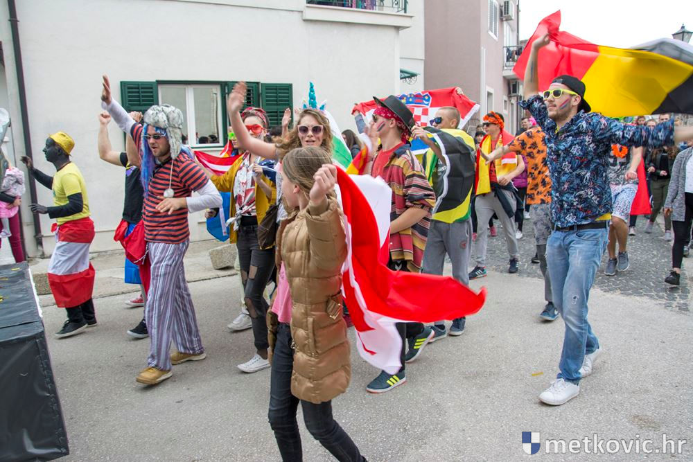 gimnazijalci koji su se maškarali u hipije. Prirodoslovni muzej Metković maškarao se u Četiri godišnja doba, a poslije njih u povorci su se mogli vidjeti Mickey i Minnie Mouse, Kiri Minions, Mačkari Vid, Pokladno društvo Prud, Veseli cvjetići i Vlak smrti.