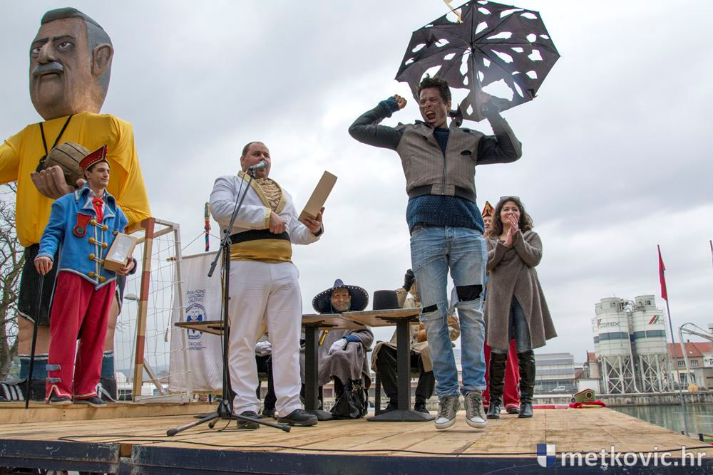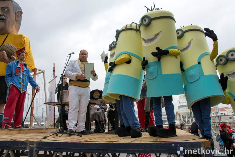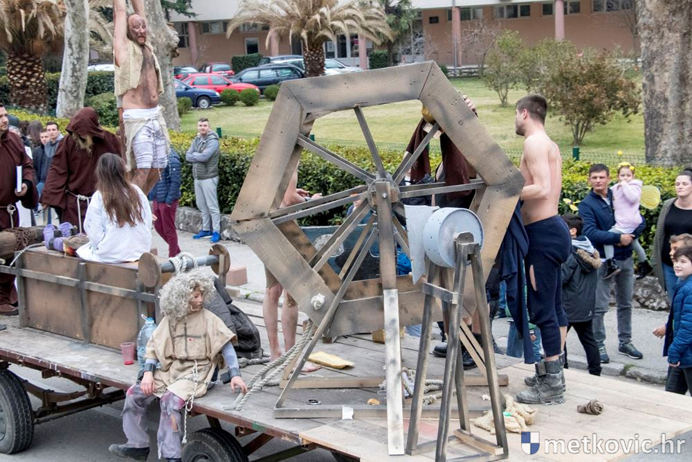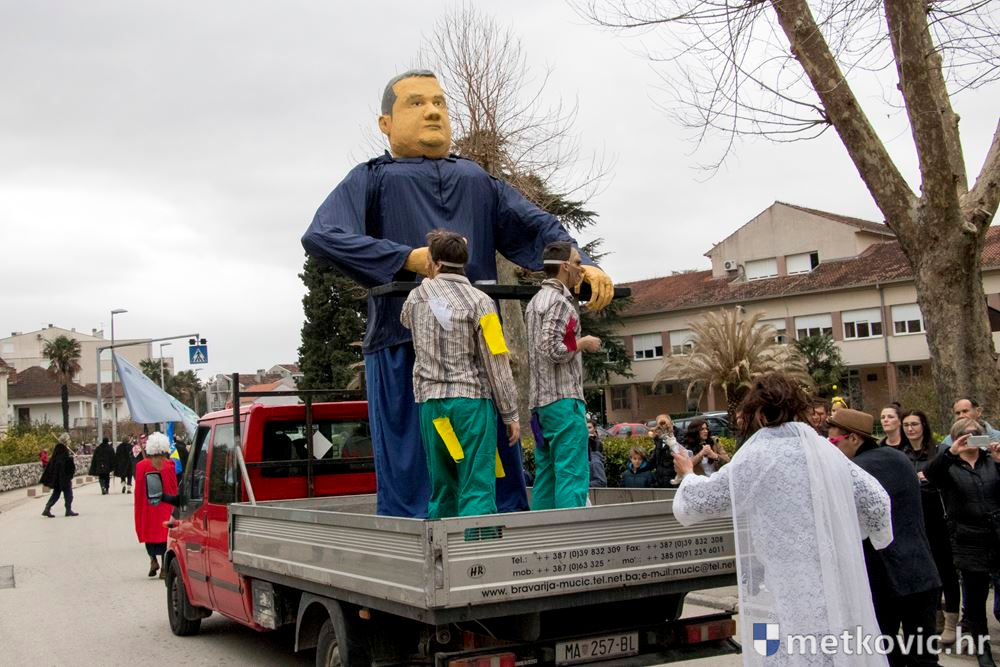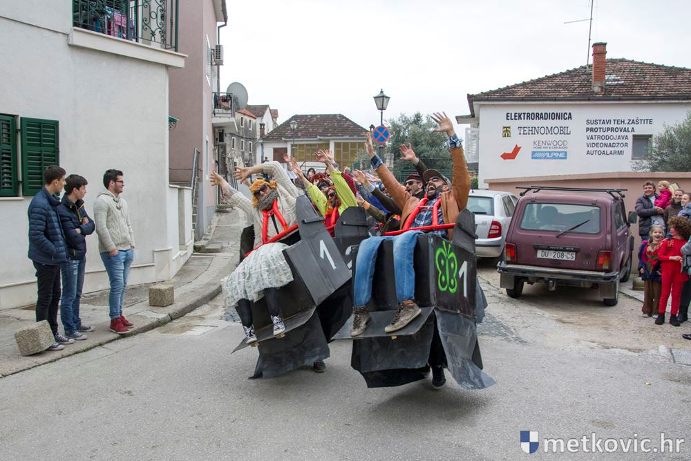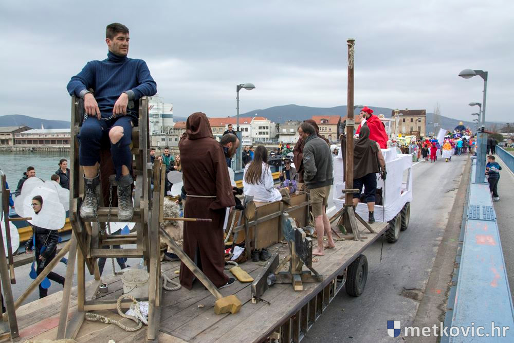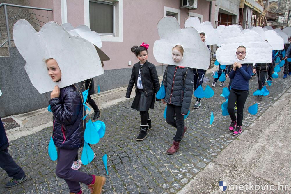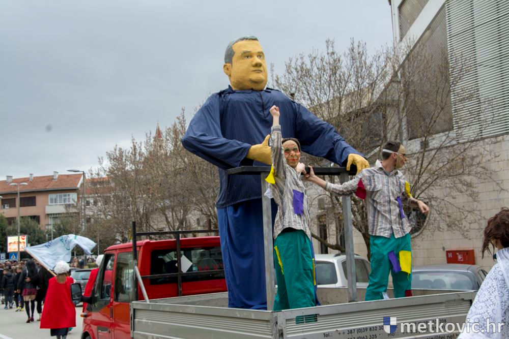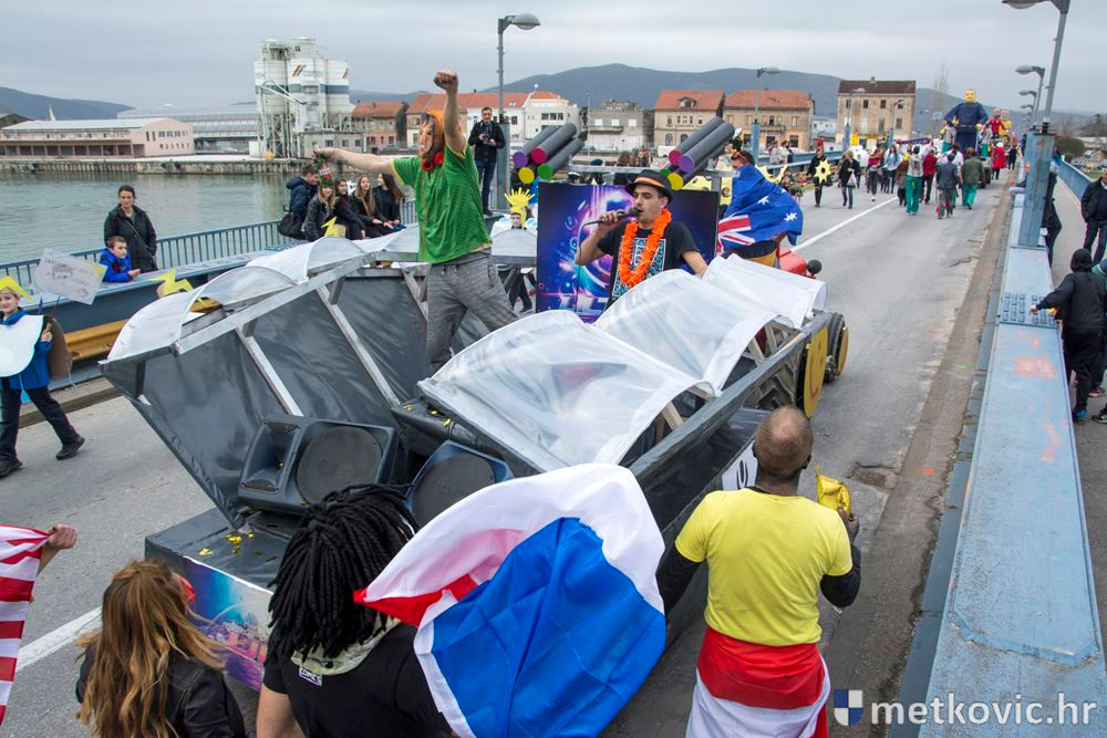 gimnazijalci koji su se maškarali u hipije. Prirodoslovni muzej Metković maškarao se u Četiri godišnja doba, a poslije njih u povorci su se mogli vidjeti Mickey i Minnie Mouse, Kiri Minions, Mačkari Vid, Pokladno društvo Prud, Veseli cvjetići i Vlak smrti.