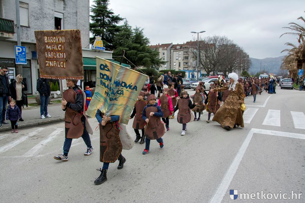 Povorku su predvodili OŠ Stjepana Radića s maskom Vakula je rekao, slijedila ih je OŠ Don Mihovila Pavlinovića čiji su se učenici predstavili kao Barokni malci, barokni znalci, a potom